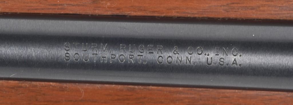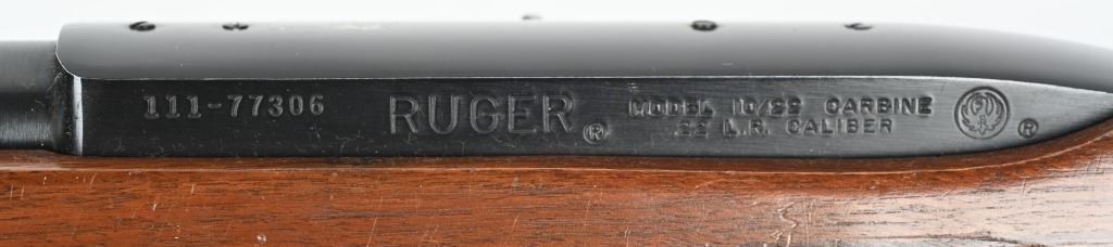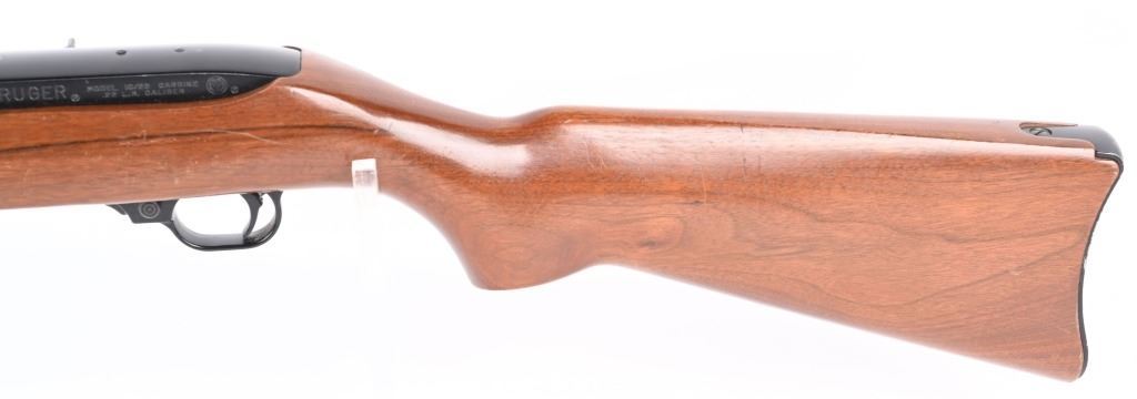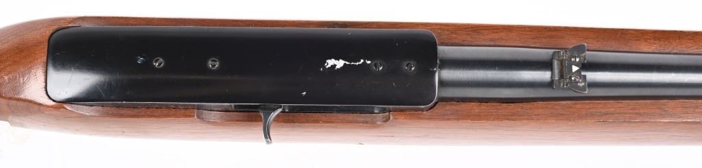 SERIAL NUMBER: 111-77306. BARREL: 18-1/2". CALIBER: .22LR. MANUFACTURED: 1972. Standard markings and features. Factory blade front sight and flip up u-notch rear. Original blued finish and oiled wood stock. Factory 10 round rotary magazine. CONDITION: Metal is very good overall with minor wear and handling marks. Wood has minor scrapes, scratches and dents. Bore is clean overall with strong rifling. Magazine is excellent. Magazine is excellent. C&R