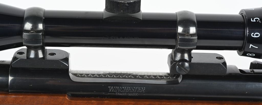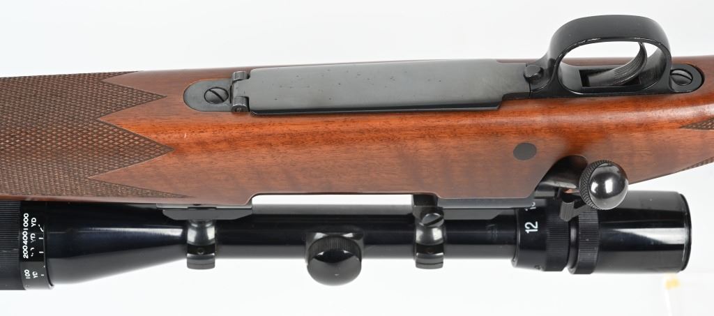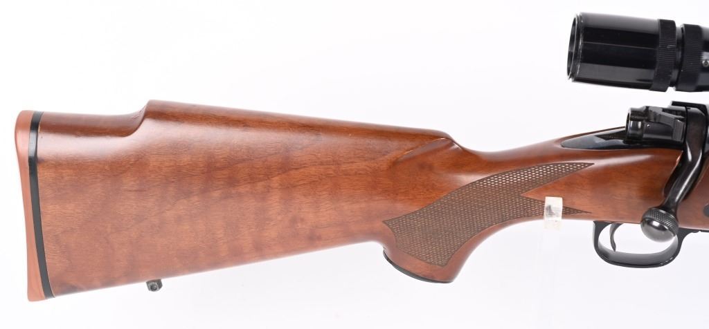 SERIAL NUMBER: G1939762. BARREL: 24". CALIBER: .270 WEATHERBY MAG. MANUFACTURED: 1990'S. Standard weight barrel, with no iron sights added. Original blued finish and oiled wood stock, with fine checkering on the wrist and forearm. Includes attached Simmons Deerfield 4-12X40 scope. CONDITION: Metal is excellent overall, with a few handling marks. Wood is excellent as well. Bore is shiny with crisp rifling. Scope is excellent with a clear optic. MODERN