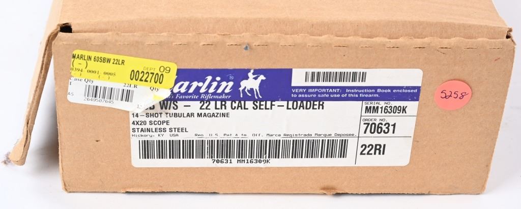 Lot 950 MARLIN MODEL 60 SB STAINLESS RIFLE WITH BOX