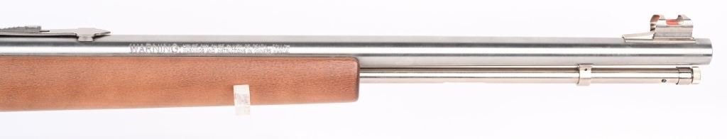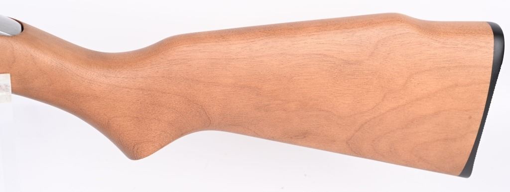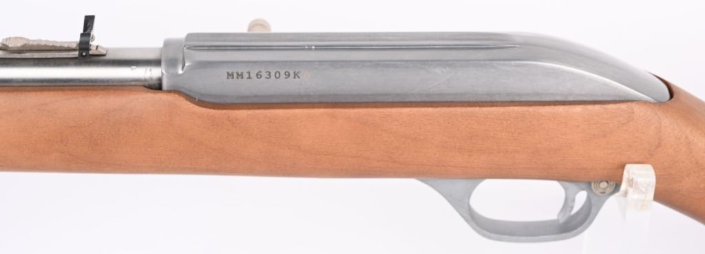 SERIAL NUMBER: MM16309K. BARREL: 19". CALIBER: .22LR. MANUFACTURED: 2000'S. Made after Remington purchased the rights to the company. Standard protected front sight, with flip up u-notch rear leaf. Stainless steel finish and plain oiled wood stock. Checkered plastic butt plate. Includes serial matching box, manual, lock and a boxed 4X20 rimfire scope. CONDITION: Excellent overall, with little signs of use or handling. Bore is shiny with strong micro groove rifling. Mechanically fine. Box is excellent. MODERN