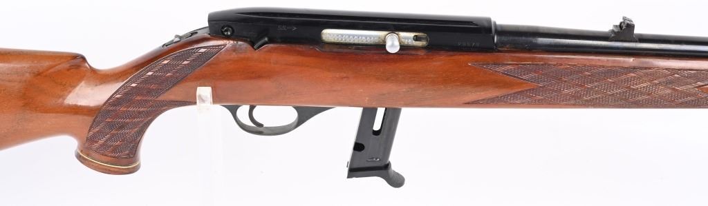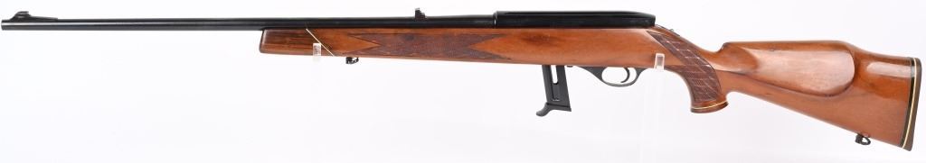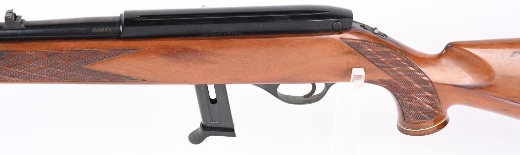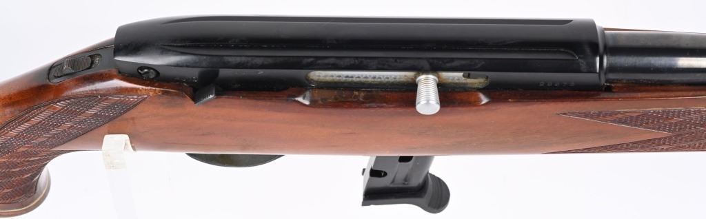 SERIAL NUMBER: 29978. BARREL: 24". CALIBER: .22LR. MANUFACTURED: 1990'S. Made in Italy by Beretta. Standard weight barrel, with blade front sight and flip up u-notch rear. Original blued finish and lacquered wood stock, with fine checkering on the wrist and forearm. Magazine feed gun, with a replacement 10 round magazine. CONDITION: Metal is good overall, with splotches of surface rust on the barrel. Wood has finish wear and a few light handling marks. Bore is clean overall with crisp rifling. Magazine is excellent. C&R