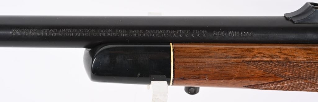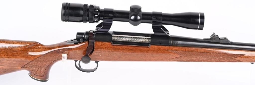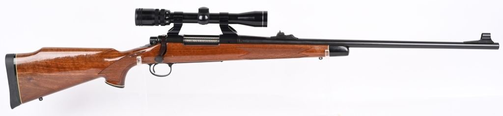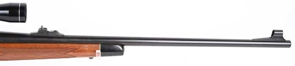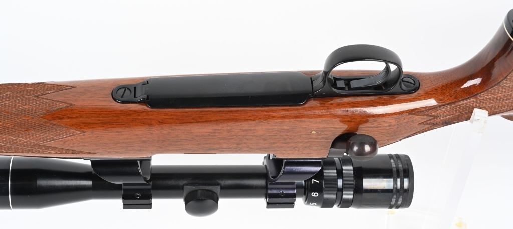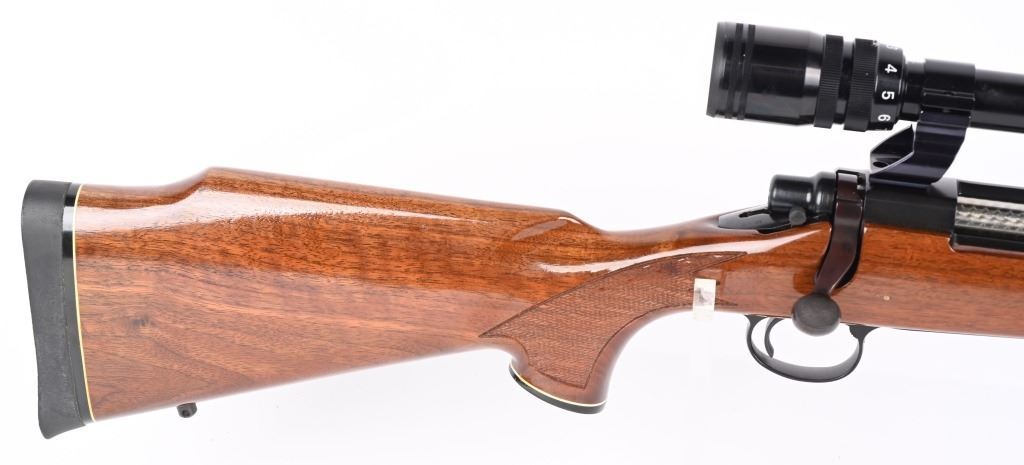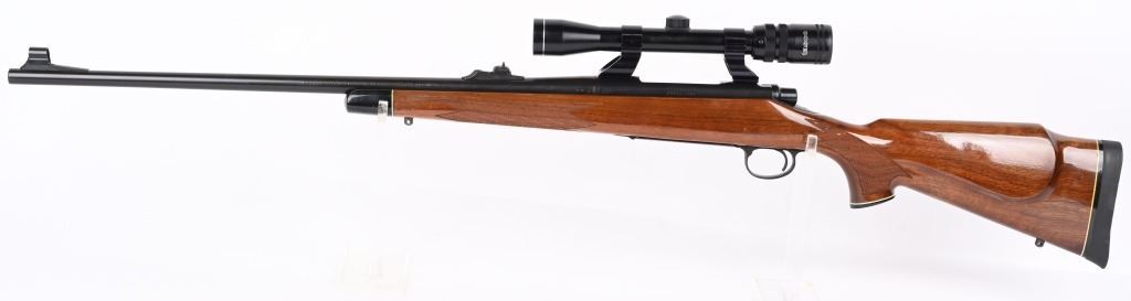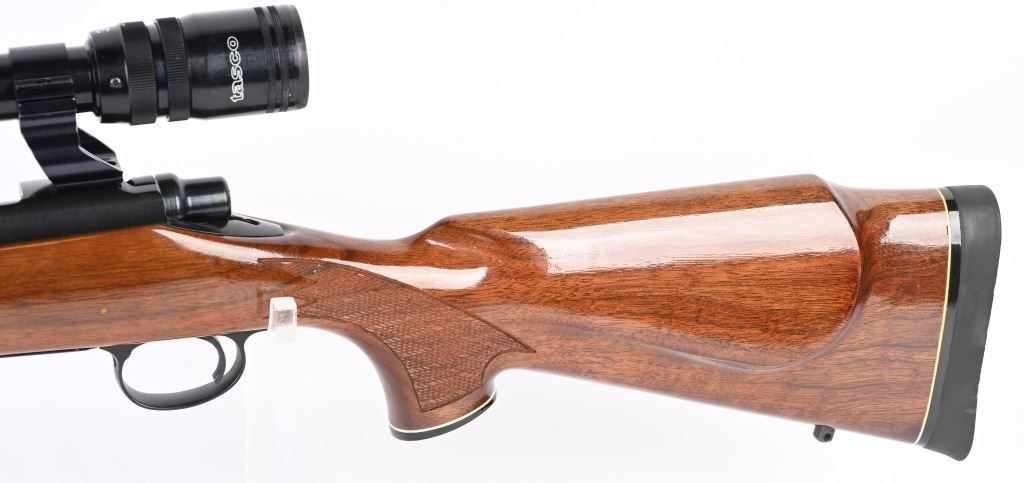 SERIAL NUMBER: C6320325. BARREL: 24". CALIBER: .300 WIN MAG. MANUFACTURED: 1988. BDL model with a standard weight barrel. Factory hooded front blade sight and u-notch adjustable rear. Original blued finish and gloss finished wood stock with fine checkering on the wrist and forearm. Capped pistol grip and thick rubber butt pad. Tasco 3-9X32 scope with see thru mounts. CONDITION: Metal and wood are excellent overall, with a few light handling marks. Bore is clean with crisp rifling.. Mechanically fine. Scope has light exterior wear. Optic has a slight fog. MODERN