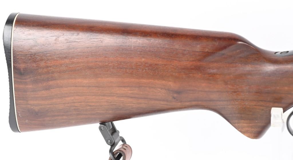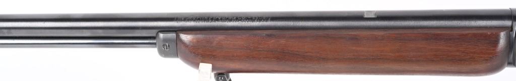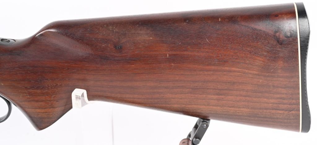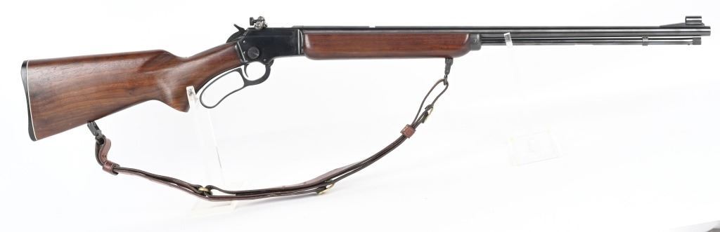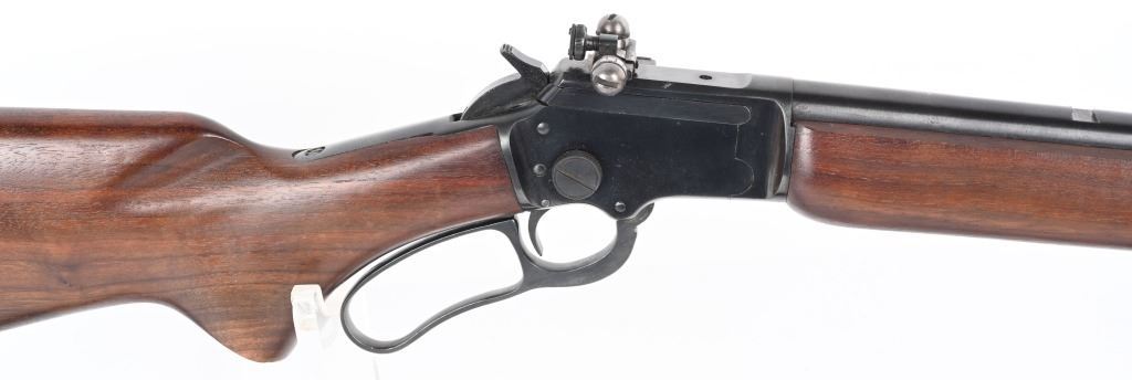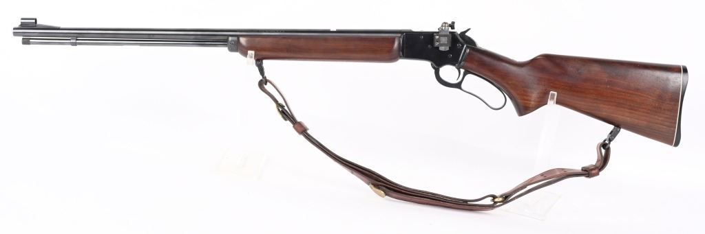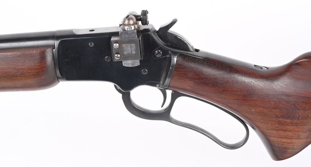 SERIAL K5588. BARREL 24". CALIBER .22RF. MADE IN 1953. Features round barrel, full magazine tube, take down, ramp front sight, rear sight removed, Redfield peep sight, plain pistol grip walnut stock, sling, Marlin butt plate. Condition. Near mint with light handling. Mirror bore. C&R