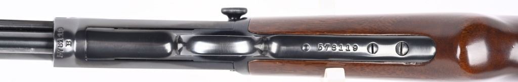 SERIAL 578119. BARREL 20". CALIBER 22RF. MADE IN 1919. Features a round barrel, near full tube magazine, sporting sights, take down, blue finish, plain pistol grip walnut stock, grooved fore-arm, Winchester plate. Condition. Completely restored to near new condition with light handling. Bore is very good but frosted. C&R