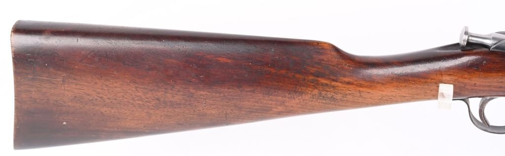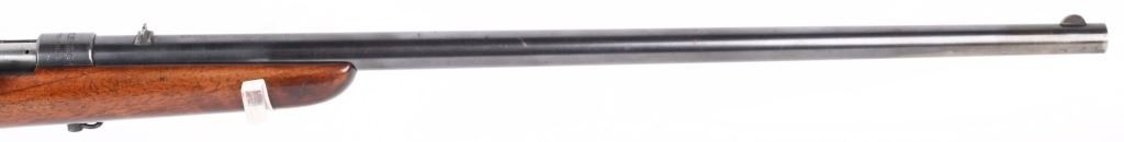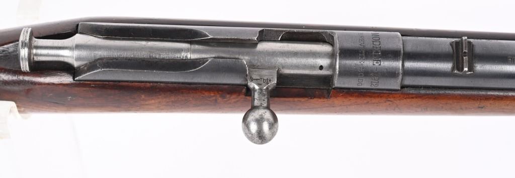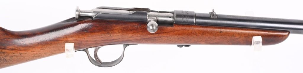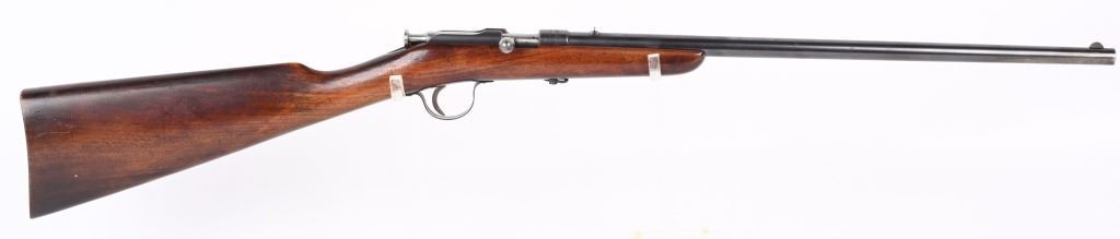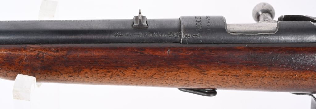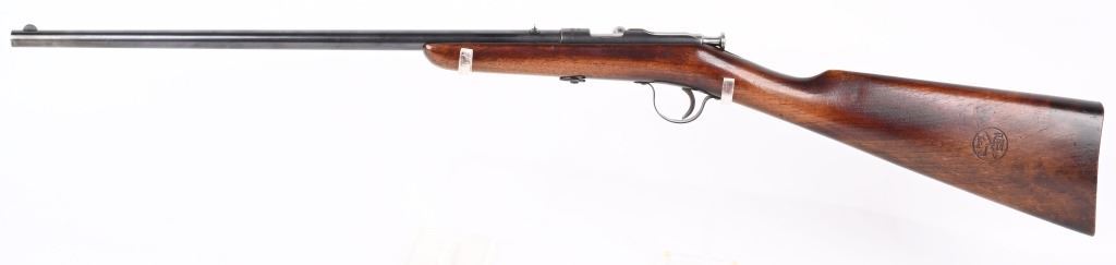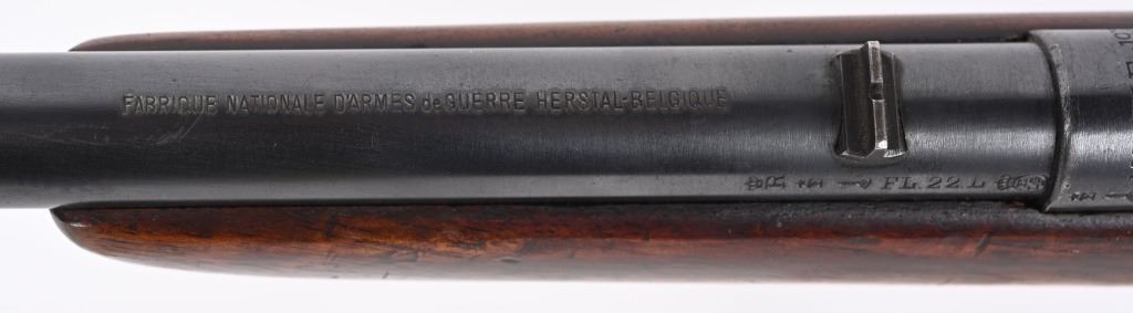 SERIAL NUMBER: 346948. BARREL: 18". CALIBER: .22 LONG. MAANUFACTURED: 1910'S. FN markings on the barrel. Chamber is marked "MODELE 1912/BREVETE-SG.DG". Standard Belgian commercial proofs on the barrel and chamber. Nice FN rifle cartouche on the left side of the butt. Matching serials on the barrel and butt area of the stock. Blade front sight and simple u-notch rear. Original blued finish and oiled wood stock. CONDITION: Metal is very good overall, with general wear and handling marks. Wood has a few minor scrapes, scratches and dents. Bore is clean overall, with strong rifling retianed. Mechainically fine. Above average condition, as these usually are very beat up. C&R