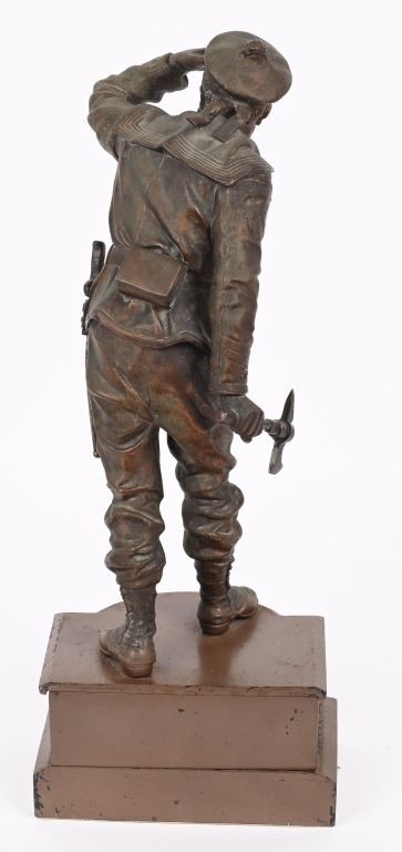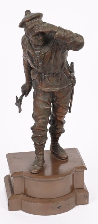 Very detailed Navy sailor in full uniform with hatchet and bayonet. Statue measures 16" tall with metal base for total height of 20". Excellent condition.