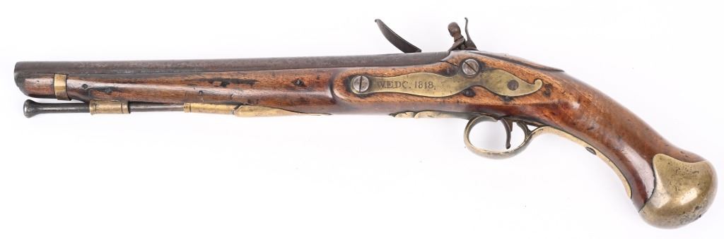 Lot 1087 EARLY BRITISH LONG SEA SERVICE FLINT PISTOL
