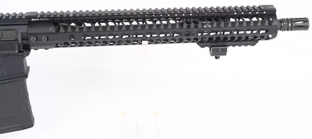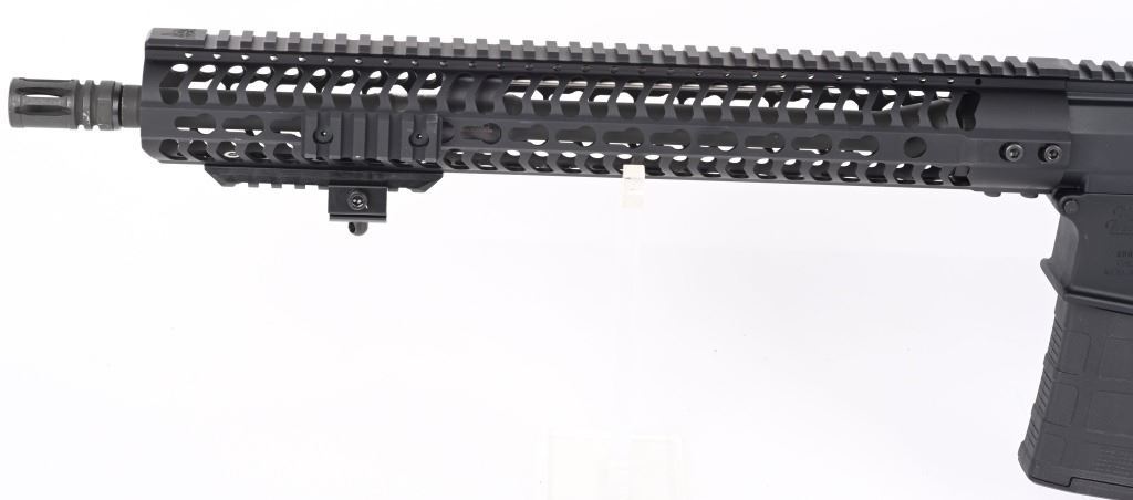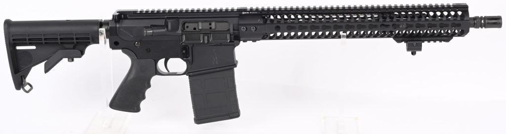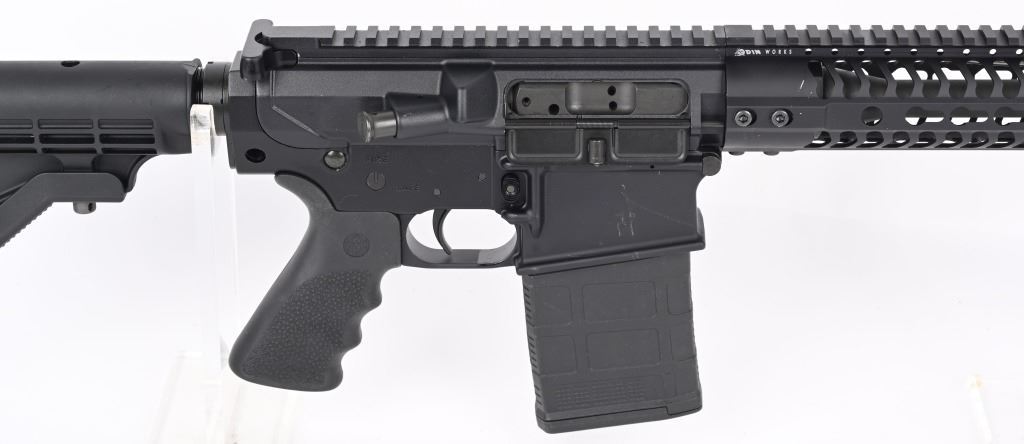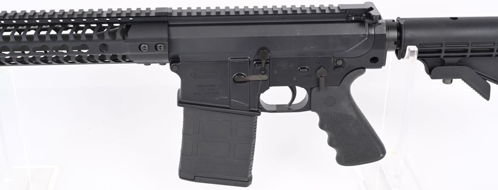 SERIAL NUMBER: RD013309. BARREL: 17". CALIBER: .308 WIN. MANUFACTURED: 2010'S. Windham's version of the AR-10. Threaded barrel with A2 flash hider and a "1/10" twist rate. Full Key Mod rail system. Flat top optics ready upper. Black anodized finish. Polymer six position butt stock and Hogue rubber grip. Includes 20 round Gen 3 PMAG. CONDITION: Metal and furniture are excellent overall, with a few handling marks. Bore is shiny with crisp rifling. Mechancially fine. Magazine is excellent. MODERN