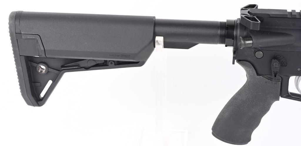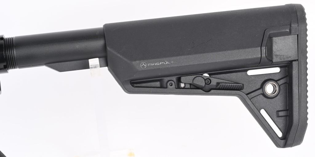 SERIAL NUMBER: M4-0250627. BARREL: 16". CALIBER: 5.56 NATO. MANUFACTURED: 2010's. Barrel is un-marked. A2 style muzzle break. Low profile gas block with no iron sights. Full MLock style rail system. Black anodized finish on the metal components. Magpul adjustable stock. Rubberized grip. CONDITION: Metal and furniture are excellent overall, with a few handling marks. Bore is shiny with crisp rifling. Mechanically fine. MODERN
