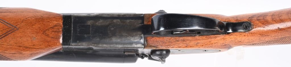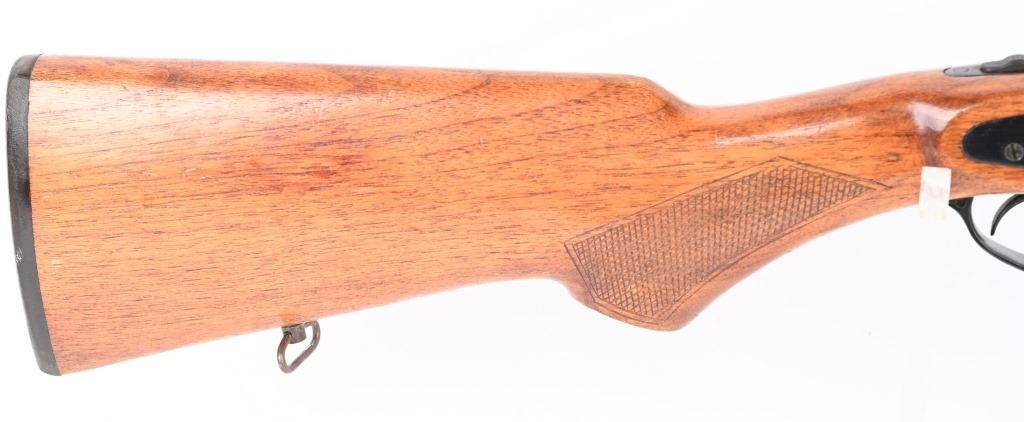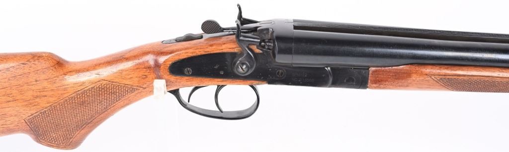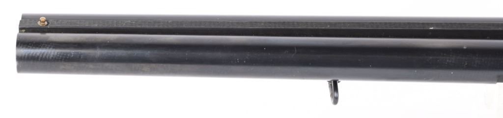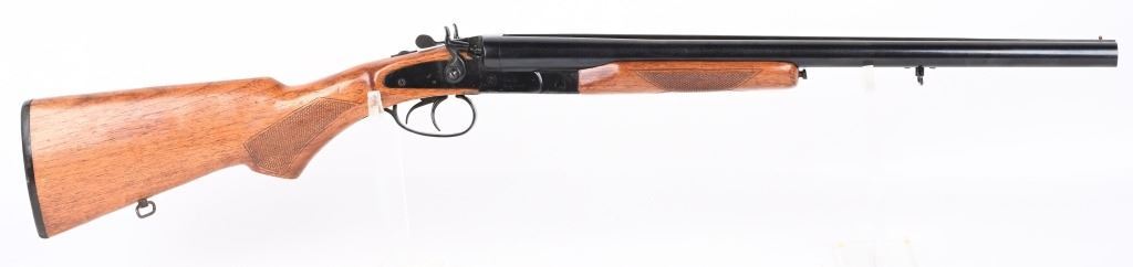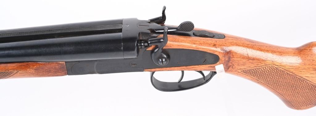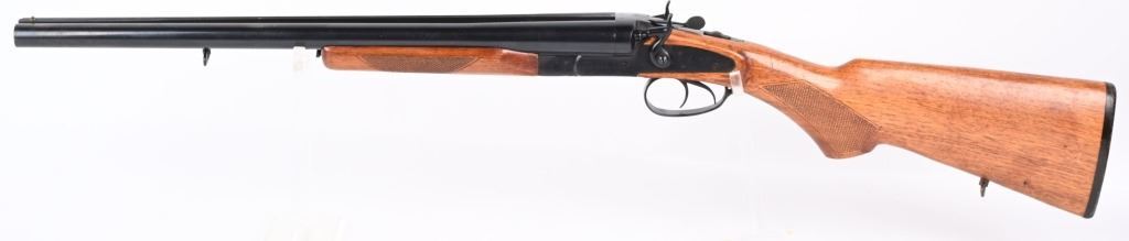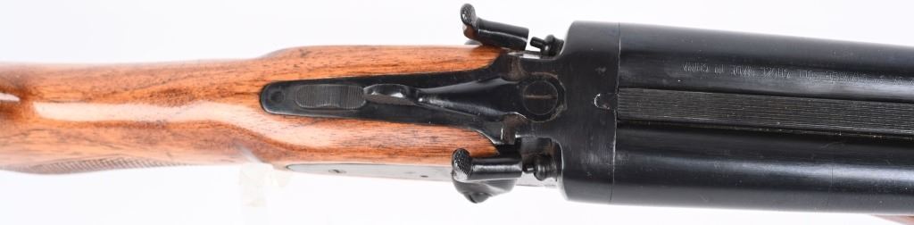 SERIAL NUMBER: 013558. BARREL: 20". CALIBER: 12 GAUGE. MANUFACTURED: 2000's. Solid ribbed barrel with bead front sight. Original blued finish and oiled wood furniture. Hard plastic butt plate. Double triggers and hammers. Tang safety. Full choke bores. LOP is: 14-1/2". CONDITION: Metal is good overall, with wear and minor freckles of surface rust throughout. Wood has minor scuffs, scratches and dents. Bores are shiny. Mechanically good. MODERN