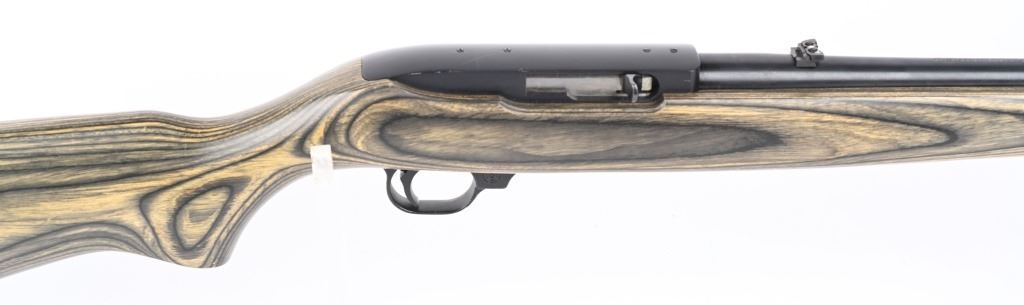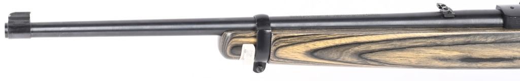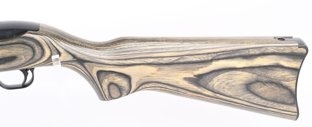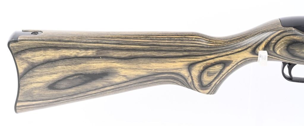 SERIAL NUMBER: 232-98070. BARREL: 18-1/2". CALIBER: .22LR. MANUFACTURED: 1990. Standard profile barrel with blade front sight and flip up u-notch rear. Factory blued/matte finishes. Factory drilled for a scope mount. Original green laminate stock. Factory 10 round rotary magazine. CONDITION: Metal and wood are very good overall, with a few handling marks and scratches. Bore is shiny with crisp rifling. Magazine is excellent. MODERN