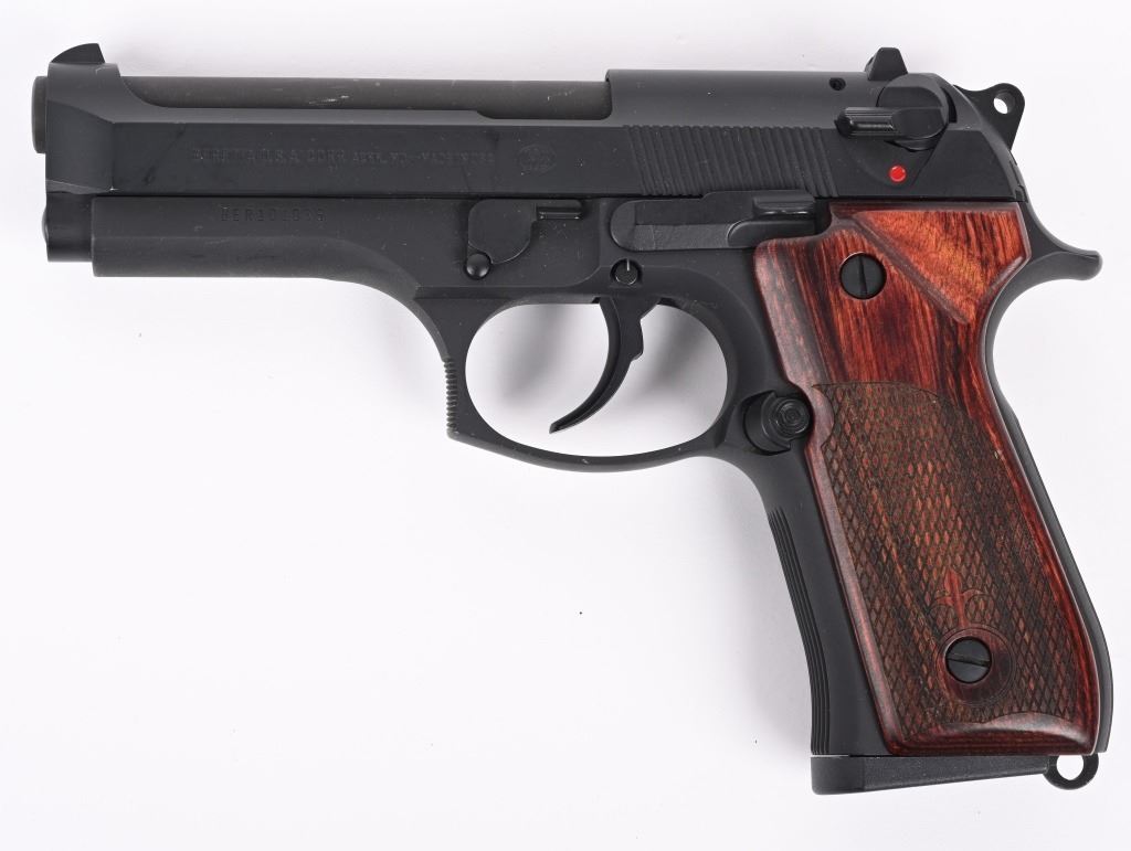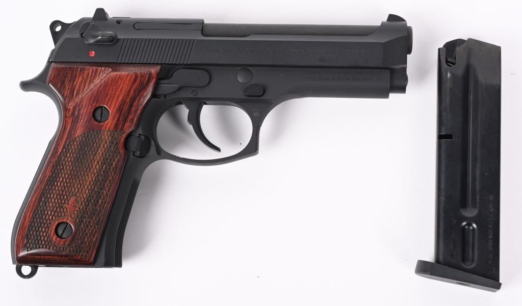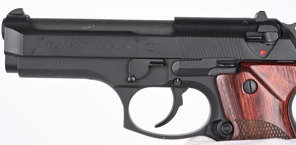 SERIAL NUMBER: BER101065. BARREL: 4-1/4". CALIBER: 9MM LUGER. MANUFACTURED: 2000'S. Made in the U.S.A. Factory 3-dot blade front sight and u-notch rear. Factory matte blued finish and rosewood grips. Includes factory 10rd metal magazine. CONDITION: Metal is excellent overall, as are the grips. Bore is clean overall with crisp rifling. Fine mechanics. Magazine is excellent. MODERN