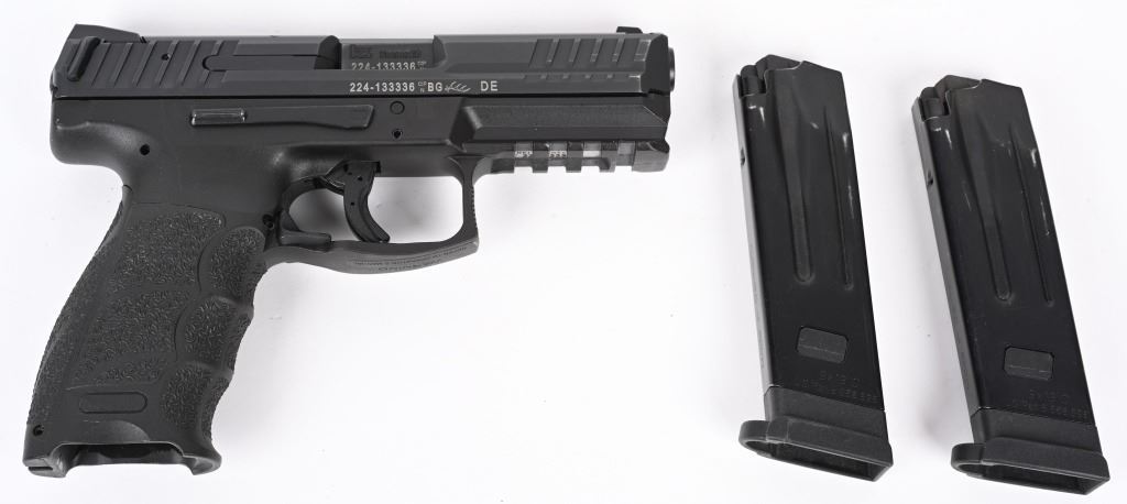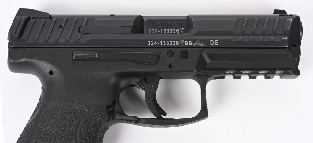 SERIAL NUMBER: 224-133336. BARREL: 4". CALIBER: 9MMX19. MANUFACTURED: 2016. Made in Germany. Standard markings and features. Standard 3-dot sights. Black anodized slide. Black polymer frame with flashlight rail on the bottom. Includes two factory 10 round metal magazines, manual, extra back straps and serial matching hard case. CONDITION: Excellent overall, with a few handling marks. Bore is shiny with crisp rifling. Magazines and case are excellent. MODERN