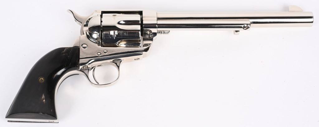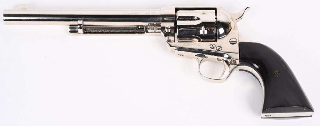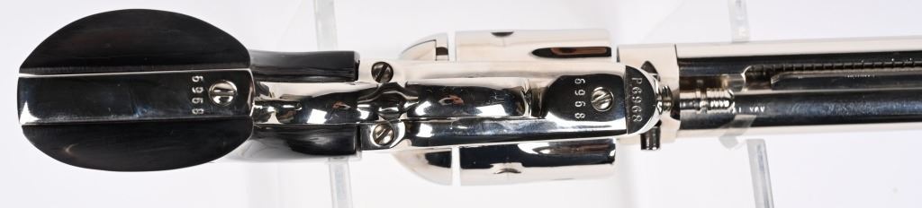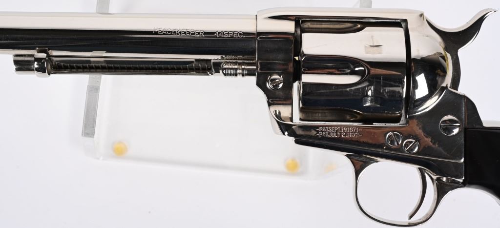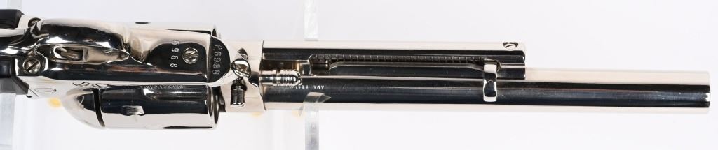 SERIAL NUMBER: P6968. BARREL: 7-1/2". CALIBER: .44 SPECIAL MANUFACTURED: 1990'S. Made in Italy. Blade front sight and u-notch rear. Bright nickel finish and synthetic grips. CONDITION: Metal is excellent overall, with a few scratches. Grips are very good overall. Bore is shiny with crisp rifling. Fine mechanics. MODERN