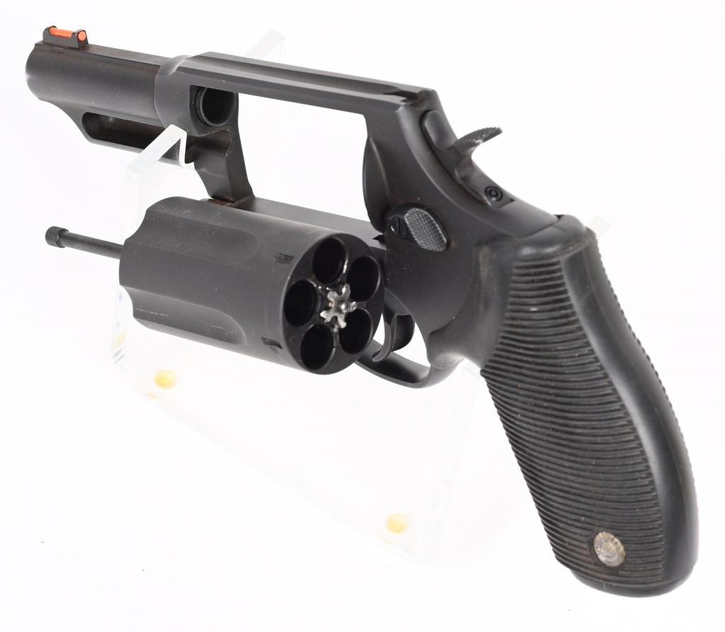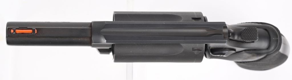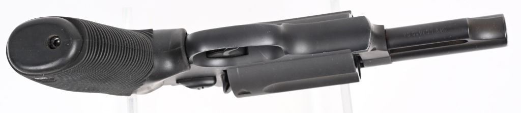 SERIAL NUMBER IP113490 BARREL 3" CALIBER 45 COLT / 410 GA, SHOGUN INTERCHANGABLY. MANUAFCTURED CIRCA 2000. Black matte blue finish with long 5 shot fluted cylinder. Rubber recoil absorbing factory grips with monograms. Single and double action operation. Fixed sights. CONDITION, Very fine with over 98% blue finish. Excellent bore and proper operating action. Grips are excellent. MODERN