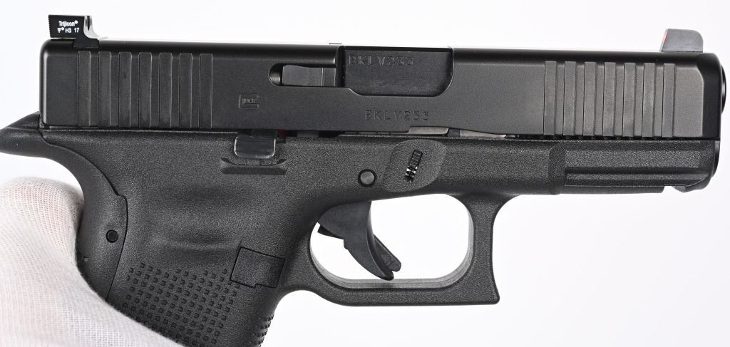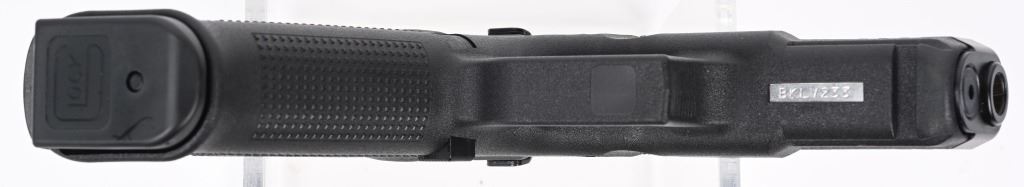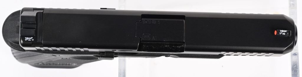 SERIAL NUMBER: BKLV233. BARREL 4". CALIBER: 9X19. MANUFACTURED: 2020'S. Made in Austria. Standard markings and features. Trijicon sights. Black nitride slide and black polymer frame. Includes 3 factory 17 round magazines, grip straps, loader, lock, manual, papers and serial matching hard case. CONDITION: Excellent overall with little signs of use. Bore is shiny and crisp. Mags and case are excellent. MODERN