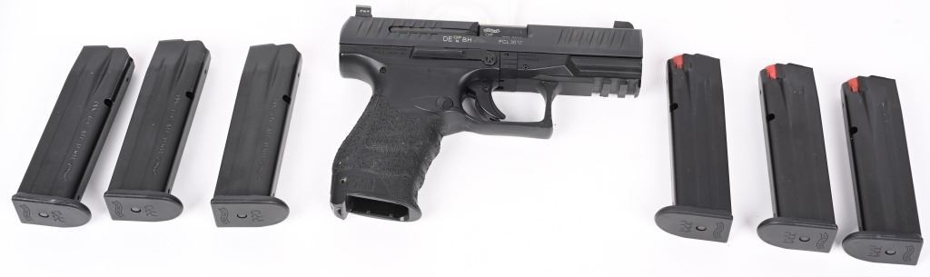 SERIAL NUMBER: FCL3610. BARREL: 4". CALIBER: 9MM LUGER. MANUFACTURED: 2017. Made in Germany. Tru Glo front dot sight and large u-notch rear. Blued slide and black polymer frame, with a textured grip and flash light mount on the bottom. Includes six factory 15 round metal mags, papers and serial matching hard plastic case. CONDITION: Very good overall, with a few handling marks and light wear. Bore is shiny with crisp rifling. Fine mechanics. Magazines all have a few light handling marks. Case is excellent. MODERN