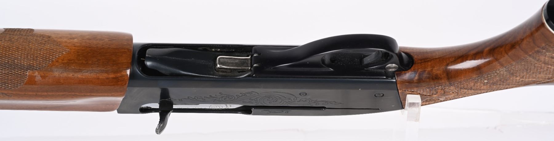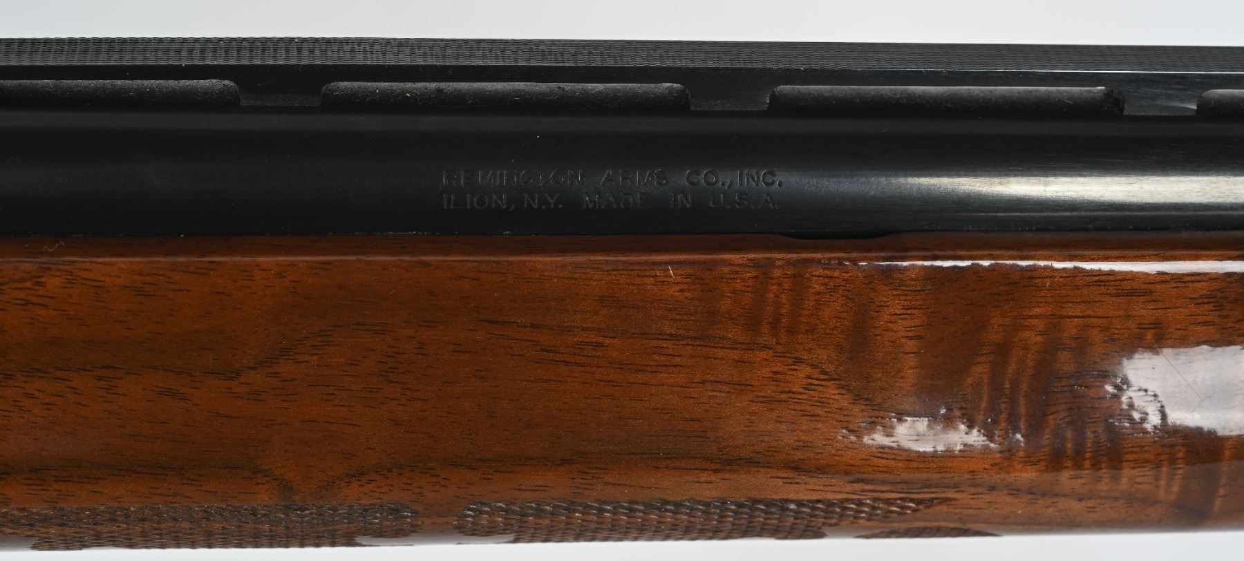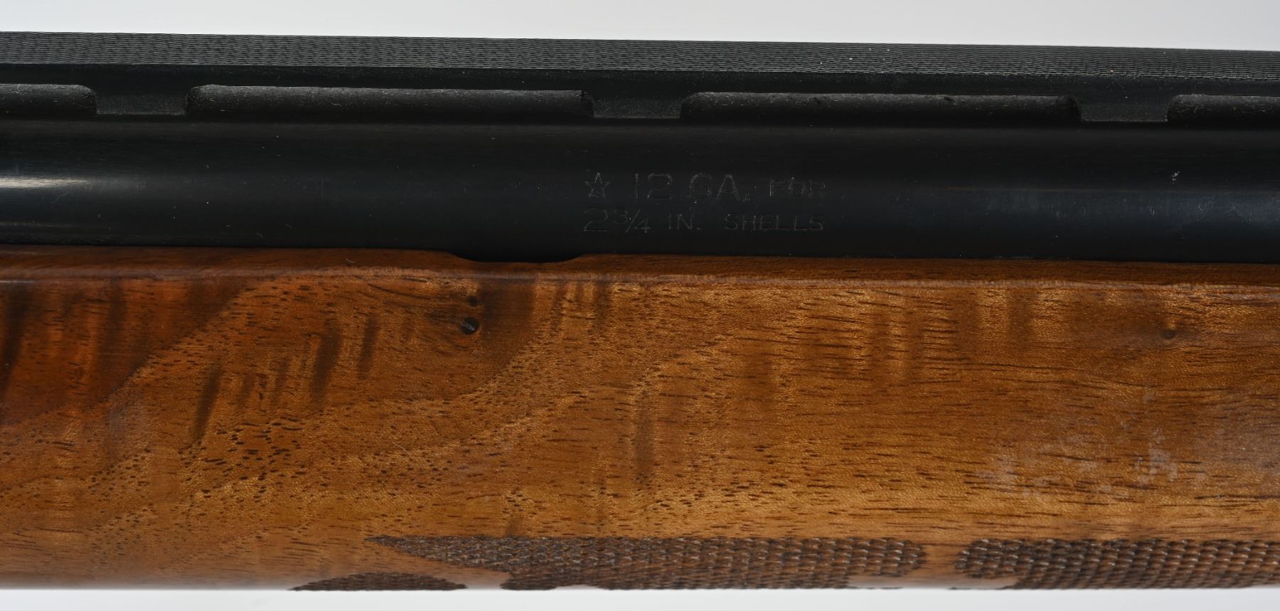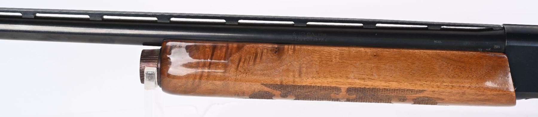 SERIAL M105826V. BARREL 28". GAUGE 12. CHOKE MOD. CHAMBER 2 3/4". LOP 14". Features vent rib, blue finish, press checkered walnut stocks with pistol grip cap & monogram plate. Condition. 98% blue with light handling and a few spots on top of frame. Wood excellent but shows light handling and use. Fine bore. MODERN