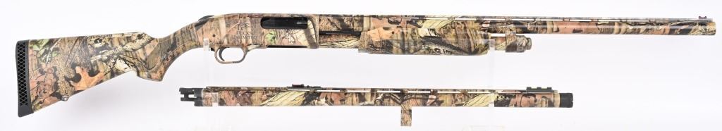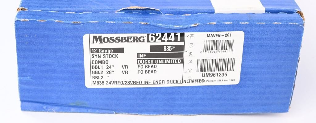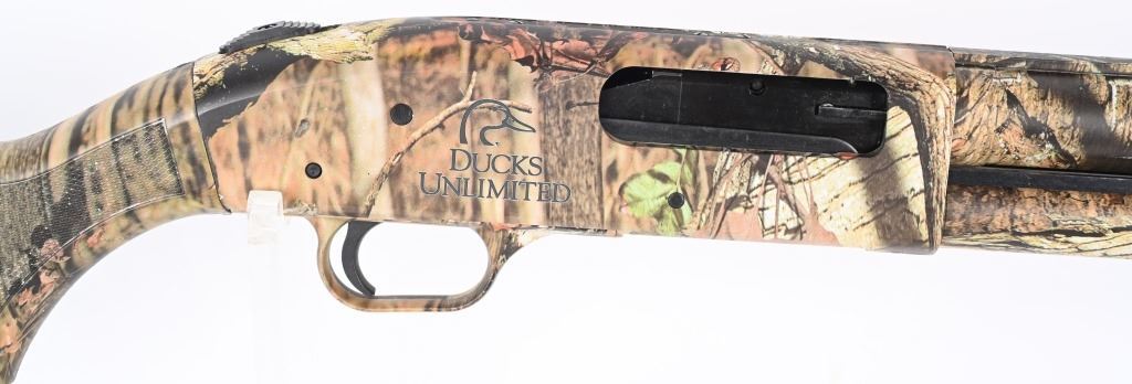 SERIAL NUMBER: UM961236. BARREL: 28". CALIBER: 12 GAUGE. MANUFACTURED: 2010's. Ducks Unlimited special, with the groups name and logo on the right side of the receiver. Two barrels, (one 24", one 28", both have vent ribs and fiber optic sights). Original Mossy Oak break up camo dip finish. Synthetic furniture. Includes serial matching box, lock. manual and additional Accu-Mag choke tubes. 3-1/2" chamber. Removable choke tubes, full chokes installed. LOP is: 14-1/4". CONDITION: Excellent overall, with a few handling marks. Bore is shiny, looking to be unfired post factory. Box is excellent. MODERN