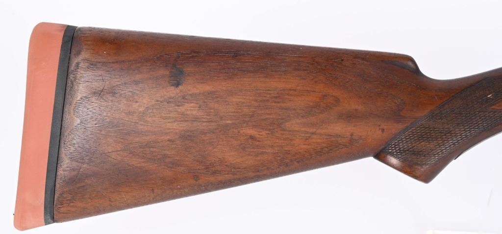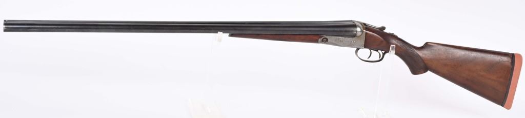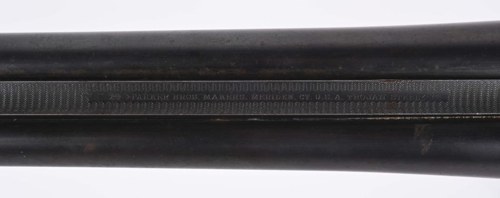 SERIAL NUMBER: 203573. BARREL: 30". CALIBER: 12 GAUGE. MANUFACTURED: 1920'S. Barrel rib is marked "PARKER BROS. MAKERS. MERIDAN. CT. U.S.A. TROJAN STEEL". Both sides of the frame are marked "PARKER BROS". Matching serials on the frame, barrel and forearm. Solid matted rib with bead front sight. Barrels are factory blued. Case colored frame and hand guard reinforcement. Wood has been lightly refinished at some point. Checkering remains on the wrist and forearm. Added red rubber butt pad. Double triggers and tang safety. 2-3/4" chambers. LOP is: 14-3/4". Chokes measure at full and improved modified choke bores. CONDITION: Metal is good overall, with general wear and finish loss. Case coloring on the frame is mostly gone. Wood has light scratches, scrapes and handling marks. Bores have minor pitting, mostly near the breech. Solid lockup. C&R