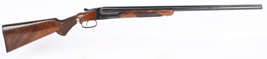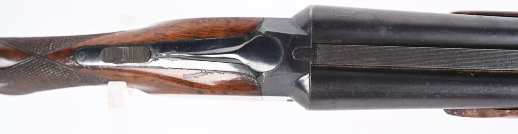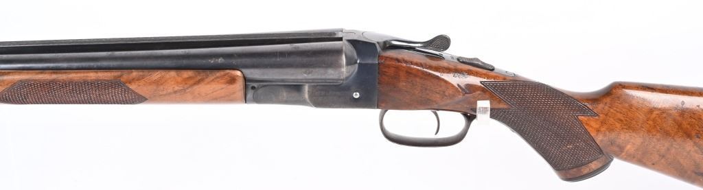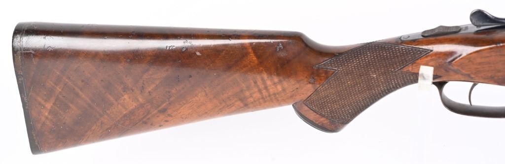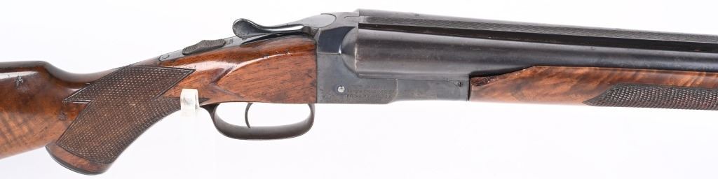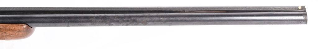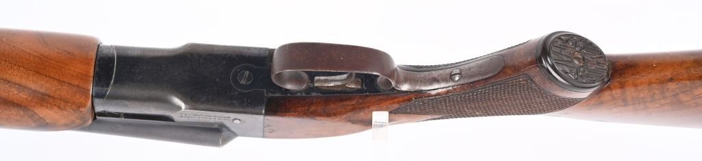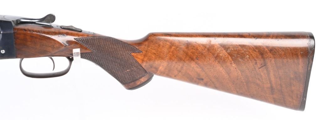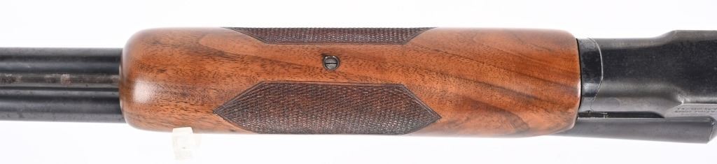 SWERIAL NUMBER: 25522. BARREL: 26". CALIBER: 20 GAUGE. MANUFACTURED: 1930'S. Serial number and patent dates on the inside of the water table. Company markings on the right side of the frame. Matching serials on the frame, barrel, forearm and forearm bracket. Solid, serrated rib with white ivory bead front sight. Original blued finish and oiled wood stock with fine checkering on the wrist and forearm. Capped plastic pistol grip and butt plate. Single trigger and tang safety. 2-3/4" chamber. Modified and full choke bores. LOP is: 14-1/4". CONDITION: Metal is good overall, with finish loss, and scattered cleaned pitting on the barrel. Frame has light finish loss as well. Wood has minor handling marks, scrapes and scratches. Bores are shiny. Tight lockup. C&R