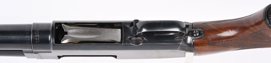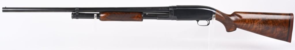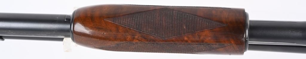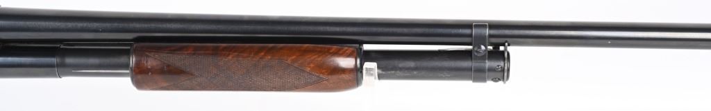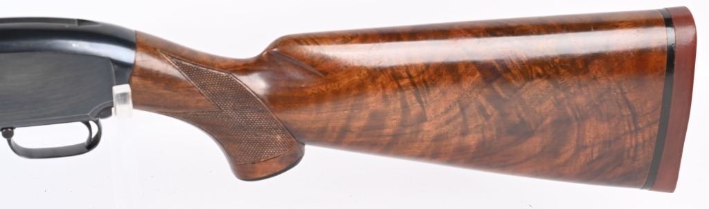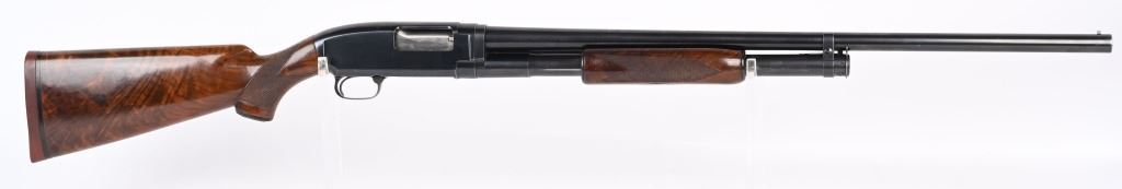 SERIAL 1120570. BARREL 28". GAUGE 12. MADE IN 1949. CHAMBER 2 3/4". CHOKE FULL. LOP 14.5". Features blue finish, plain barrel, deluxe walnut pistol grip stock with grip cap and solid red recoil pad. Condition. Really sharp gun. Stock has oil finish with extra grain, sharp checkering, overall a 95% gun with some high edge wear with normal handling marks on frame and some light stock impressions and handling. Mirror bore. C&R