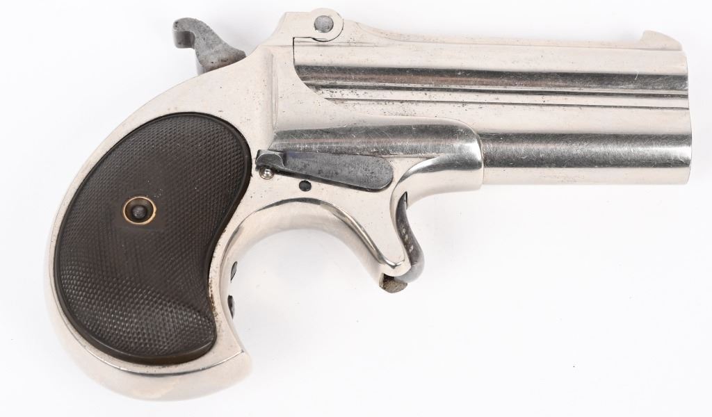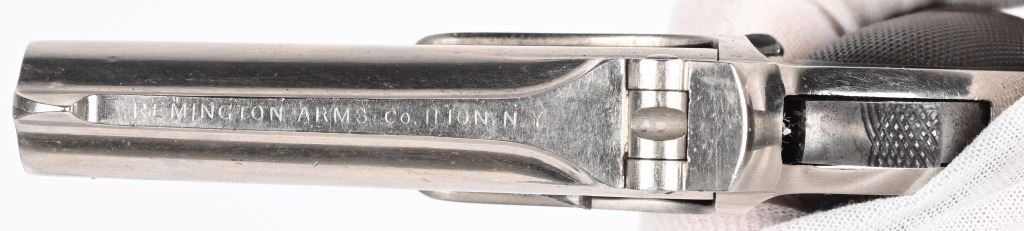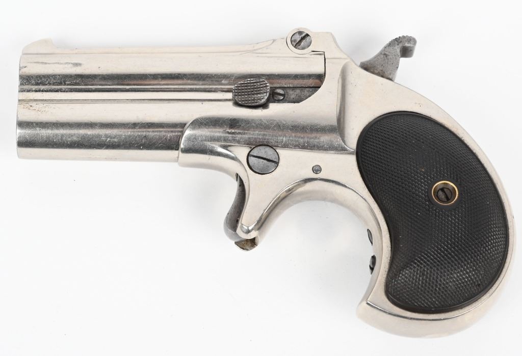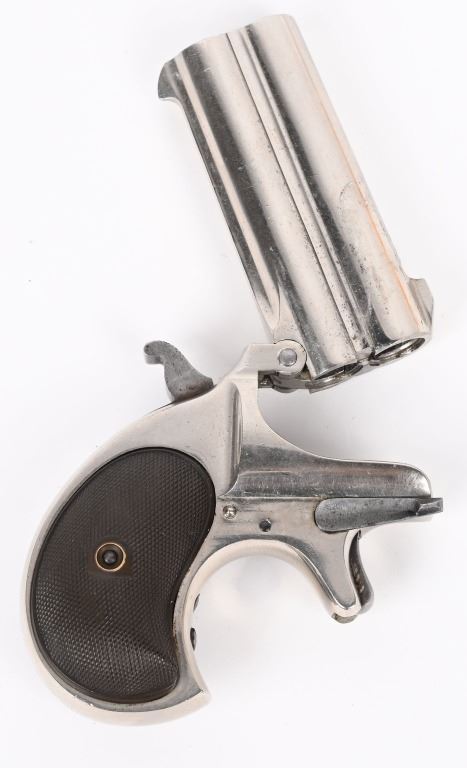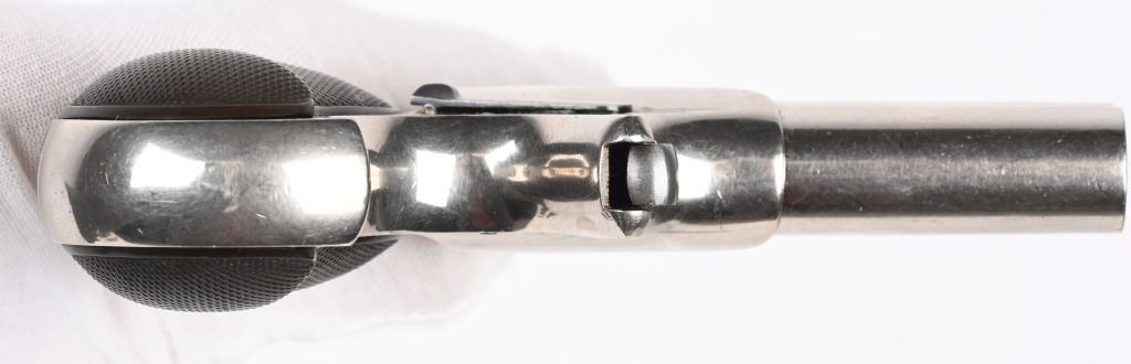 SERIAL 142. BARREL 3". CALIBER .41 RF. TYPE 3. Nickel finish with black checkered gutta percha grips. Condition. Exceptionally nice retaining nearly all the nickel finish, tight lock up, mirror bores, fine action, sharp grips, perfect hinge. C&R