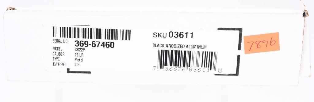 SERIAL NUMBER: 369-67460. BARREL: 3-1/2". CALIBER: .22LR. MANUFACTURED: 2020'S. Standard markings and features. Factory 3-dot adjustable sights. Black anodized finish and polymer frame. Includes three factory 10 round blued steel magazines, lock, manual, extra grip straps, base plates and serial matching box. CONDITION: Excellent overall, with no signs of handling or use. Bore is shiny and crisp. Looks to be unfired from the factory. Magazines are excellent, as is the box. MODERN