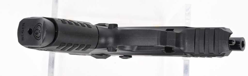 SERIAL NUMBER: 369-67487. BARREL: 3-1/2". CALIBER: .22LR. MANUFACTURED: 2020'S. Standard markings and features. Factory 3-dot adjustable sights. Black anodized finish and polymer frame. Includes three factory 10 round blued steel magazines, lock, manual, extra grip straps, base plates and serial matching box. CONDITION: Excellent overall, with no signs of handling or use. Bore is shiny and crisp. Looks to be unfired from the factory. Magazines are excellent, as is the box. MODERN