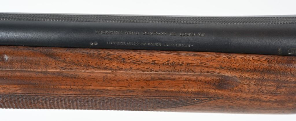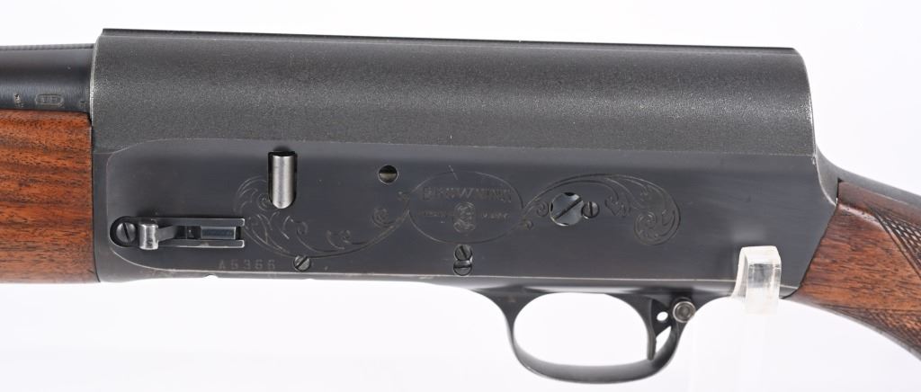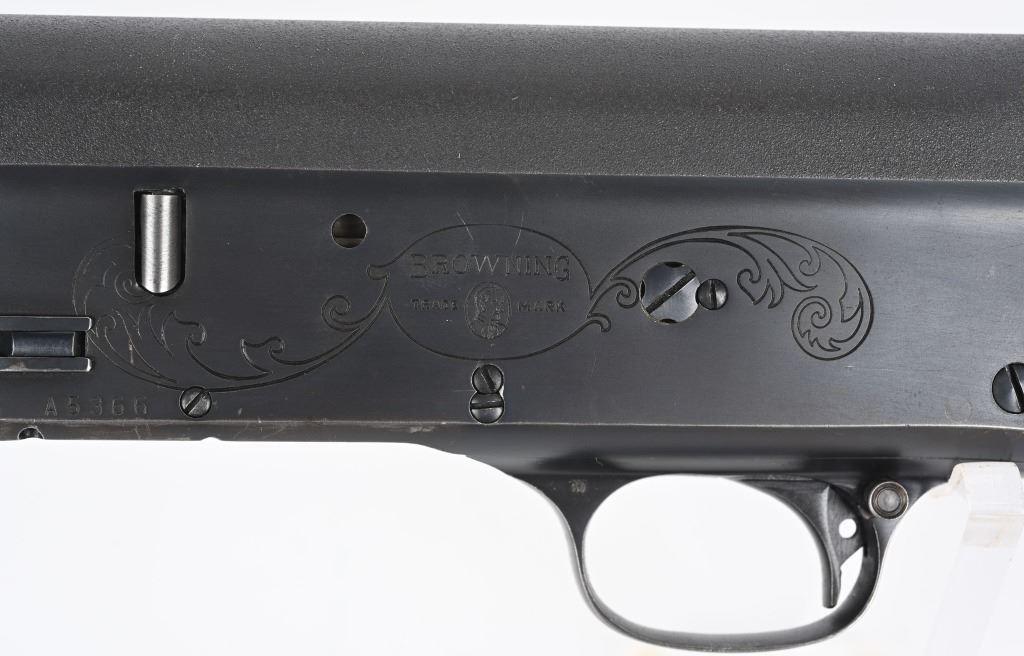 SERIAL A5366. BARREL 28". GAUGE 16. CHAMBER 2 3/4". CHOKE ** MOD. LOP 14 1/4". MADE IN 1940-46 . Barrel stamped with Browning St. Louis address but these war time guns made by Remington in US. Features the matted top frame, side serial number, matted barrel, bead on base front sight, round knob checkered walnut stock with later Browning butt plate. (stock is later replacement as well) Condition. Stocks are excellent with few light impressions. Mirror bore. Few handling marks and a bit of wear at frame base, overall about 97%. C&R