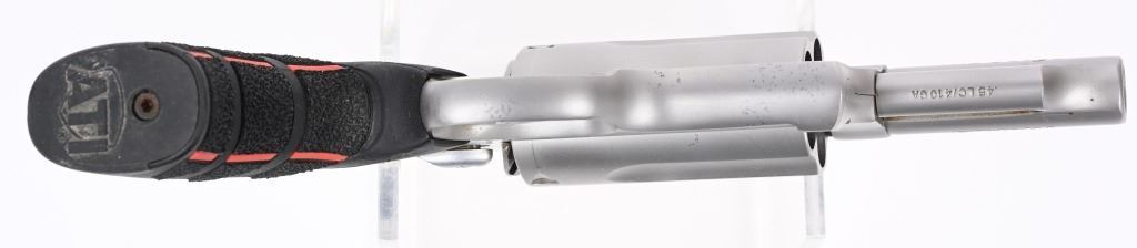 SERIAL DX310842. BARREL 3". CALIBER .45 COLT/.410. Stainless five shot double action with rubber grips, light gathering front sight pipe. Condition. Has been fired with few light handling marks. MODERN