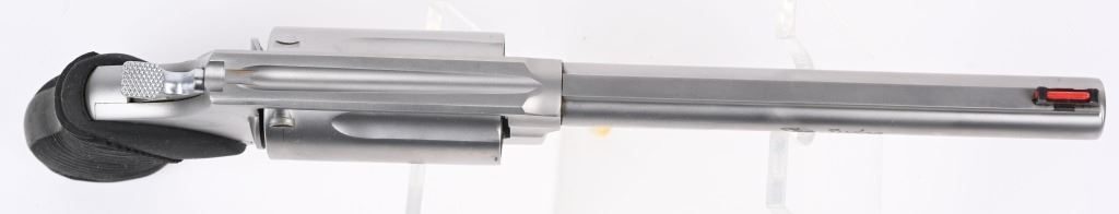SERIAL ZK43862. BARREL 6.5". CALIBER .45 COLT/.410. Stainless five shot double action with rubber grips, light gathering front sight pipe. Condition. Has been fired with few light handling marks. MODERN