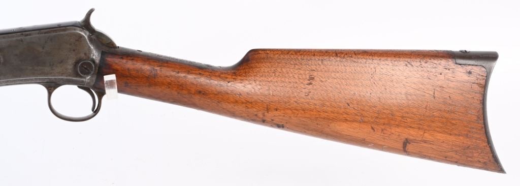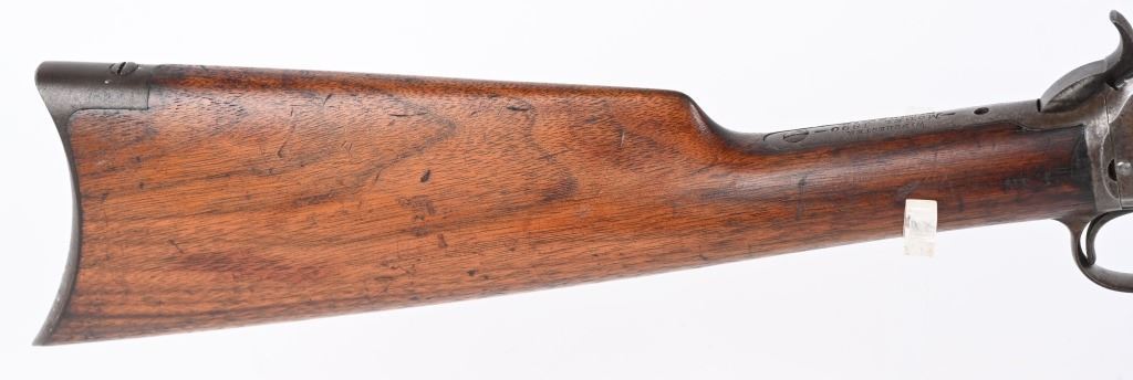 SERIAL 38019. BARREL 24". CALIBER 22 SHORT. MADE IN 1895. Features special order case color frame that no longer shows any color but bolt still has 90% of the bright blue. Full octagon barrel with single leaf rear sight and 2/3 magazine, Walnut stock with rifle butt plate and grooved forearm. Take down. Condition. Barrel and tube are a smooth blue gray patina with sharp barrel legends. Stocks are excellent , proud to metal with original finish. Bore is very good with pronounced rifling. . ANTIQUE