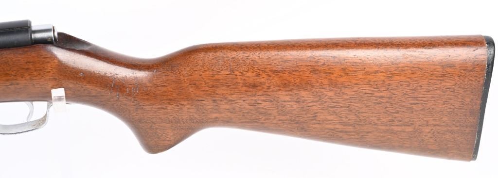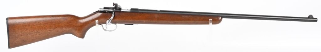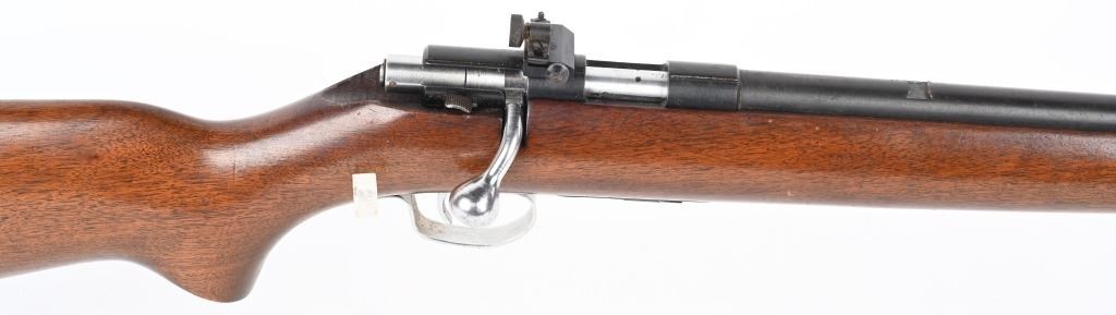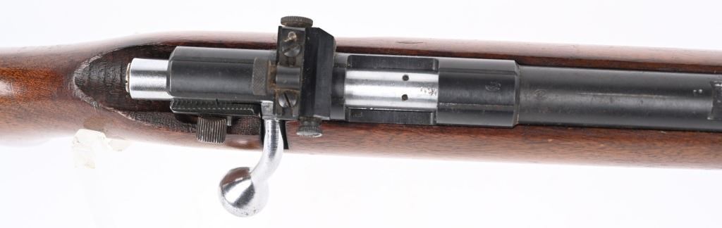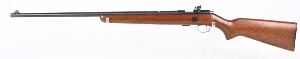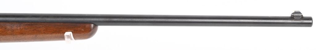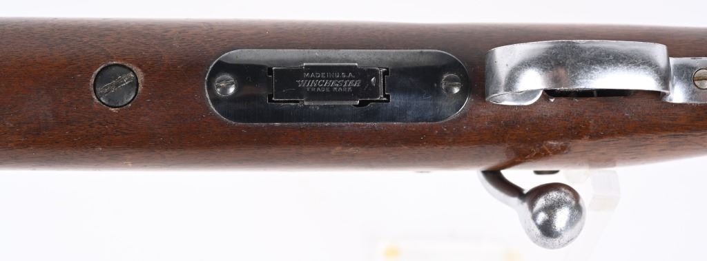 NSN. BARREL 25". CALIBER .22RF. Standard model with blue finish, grooved receiver with peep sight, walnut stock, and Winchester butt plate. Condition. Rear barrel sight was removed. 95% or better blue remains. Stock is excellent . Bore is excellent. Front sight is a high profile white bead replacement. Trigger guard has been polished bright. C&R