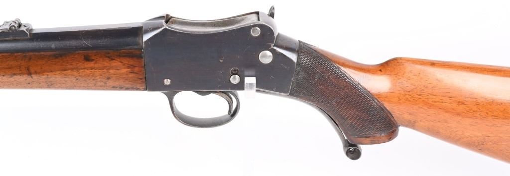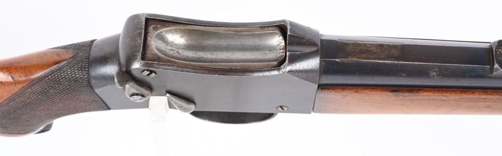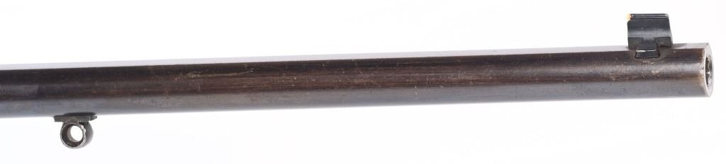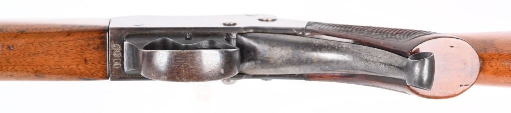 SERIAL 4011. BARREL 28". CALIBER 45-70. Original Martini large action with solid rib barrel that has English proofs under fore-arm but no maker or caliber. 45-70 enters and extracts perfectly but would check with gunsmith to confirm. Original pistol grip checkered walnut stock with straight comb and smooth steel butt plate with walnut fore-arm. Blue finish. Single leaf rear sight on an original 400 meter base with white bead front and sling swivels. Condition. Overall, at least 85% blue, excellent wood with minor impressions. Bore is sharp. No maker name anywhere.C&R