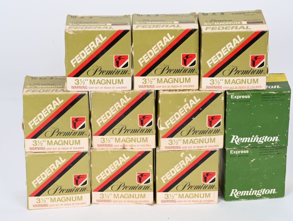 50 Rounds of Remington 10 Gauge 2-7/8 4 shot. 225 Rounds Federal Premium 3-1/2" magnum 4 shot.