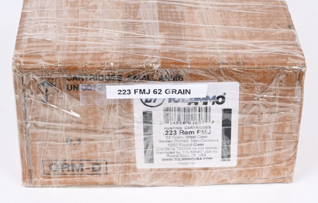 Sealed case of 1000 Russian Tula 62 GR FMJ .223. Metal cased, non corrosive, berdan primed.