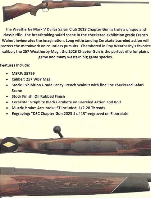 The Weatherby Mark V Dallas Safari Club 2023 Chapter Gun is truly a unique and