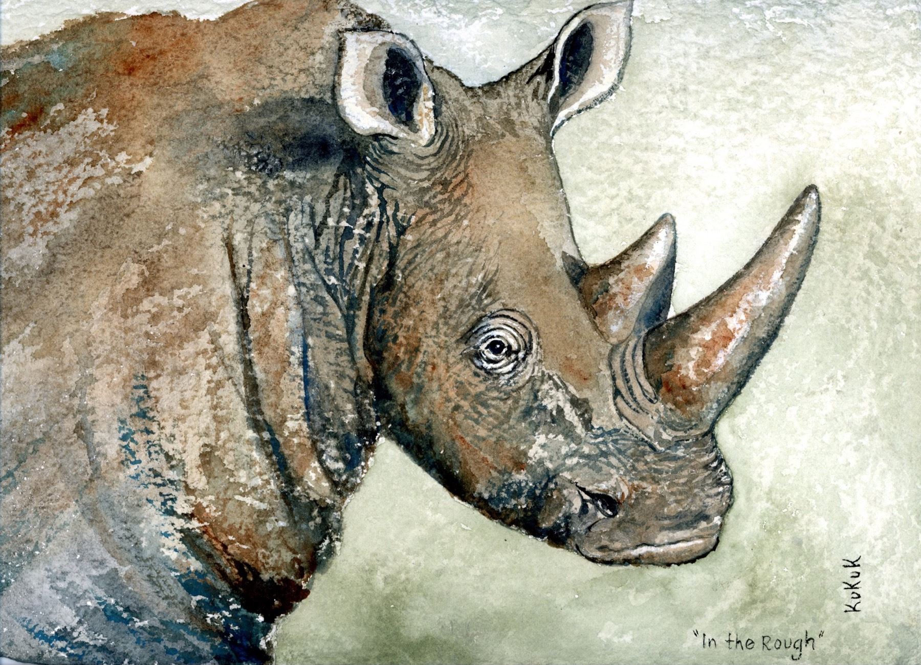 Lot 15 In the Rough (Rhino) - Linda Kukuk Painting