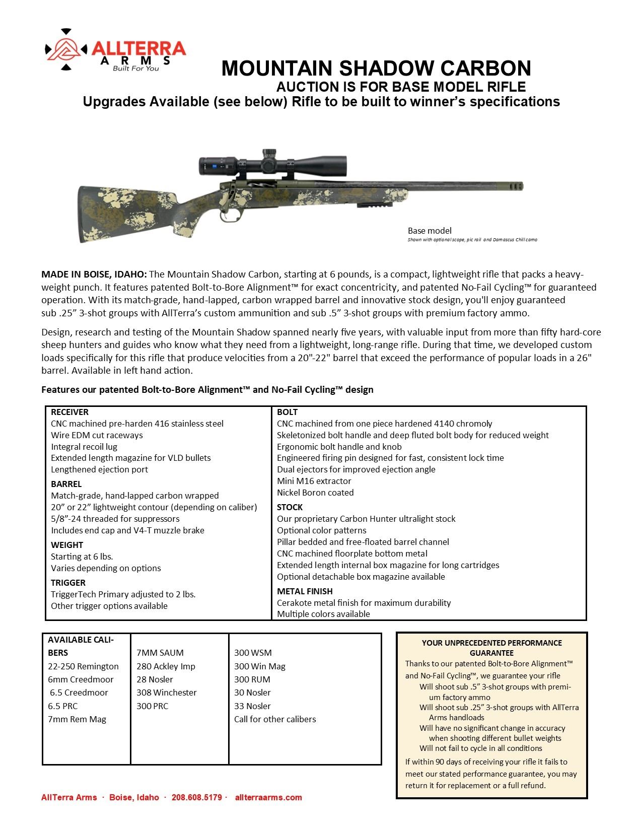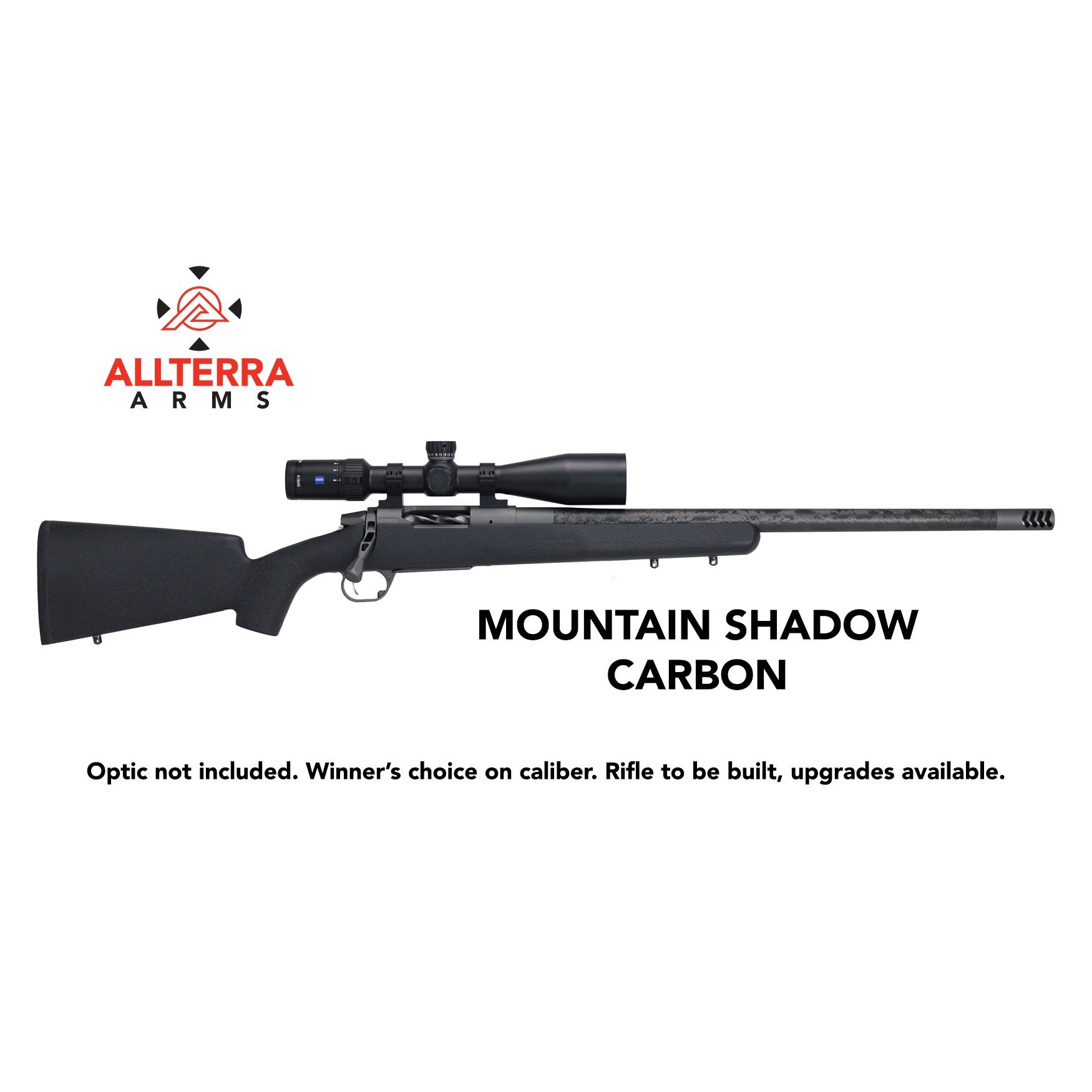 AllTerra Arms Mountain Shadow Carbon Rifle is the base rifle. Winner may upgrade at his/her expense.