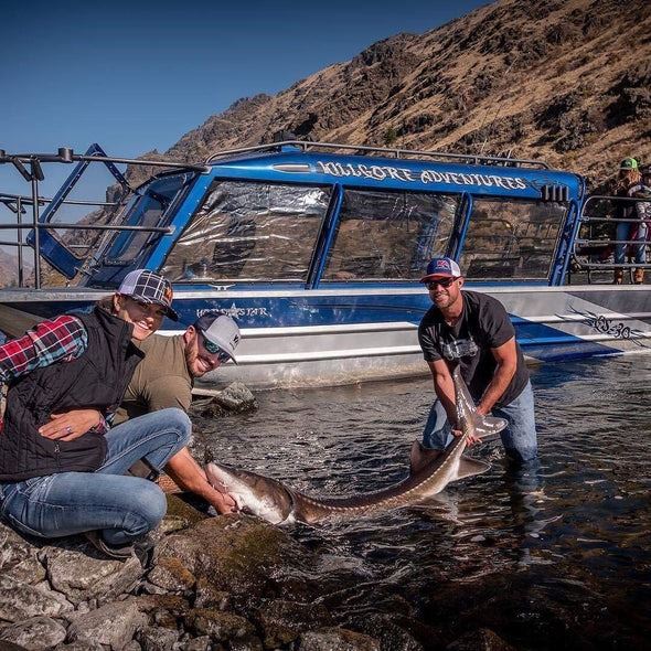 We offer riverboat adventure fishing trips for sturgeon, trout, bass, and steelhead (depending on season). This fishing trip is the best of both worlds, providing you with a private charter fishing trip while still seeing all the wildlife of the Wild River section of Hells Canyon. You'll also get the chance to run up to class 4 rapids in our jet boat. We furnish all the fishing tackle and bait. You will put in at the famous Pittsburg Landing where the Wild River begins and the Scenic River ends. Your fishing adventure begins wherever the fish are biting.