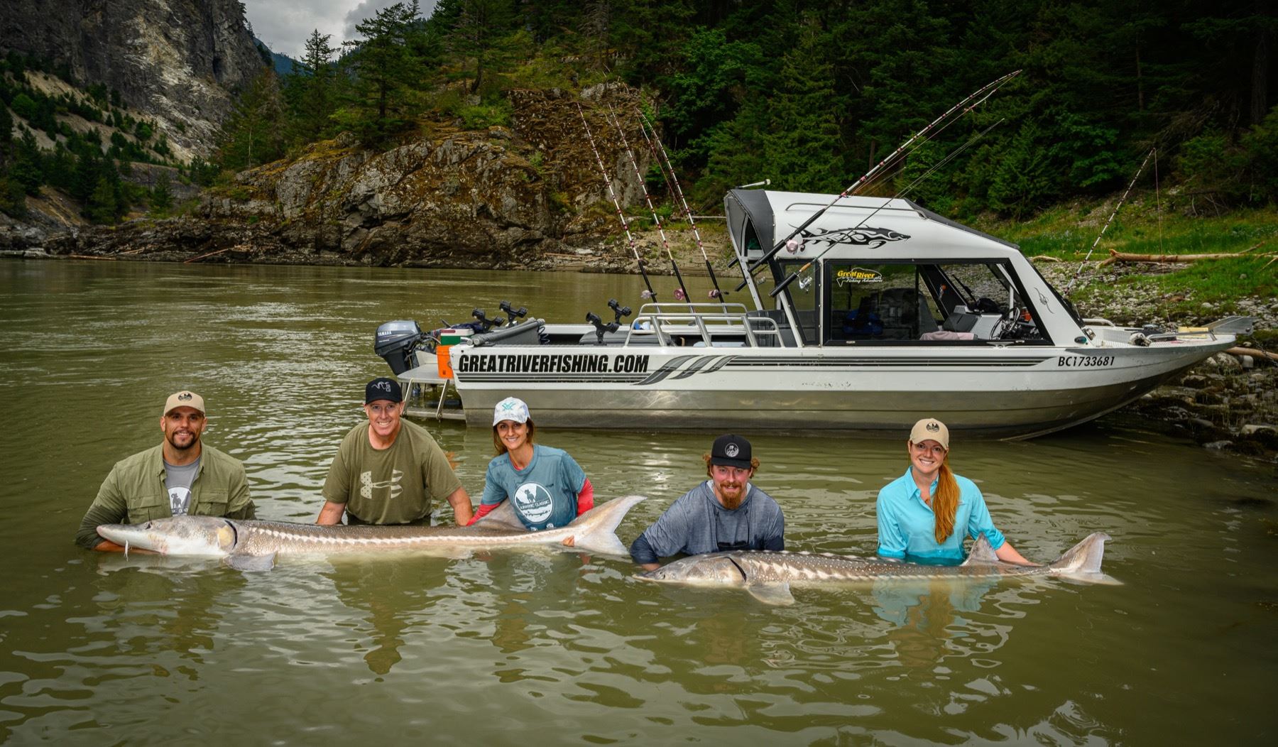 7th ANNUAL JURASSIC CLASSIC STURGEON FISHING TOURNAMENT • 2 - DAYS FOR 2 ANGLERS JURASSIC CLASSIC COMMITTEE - WSSBC AND GOABC Working with the support of the Wild Sheep Foundation, the WSSBC (Wild Sheep Society of BC) and the GOABC (Guide Outfitter Association of BC) have come together to bring you the 7th Annual Jurassic Classic Sturgeon Fishing Tournament, which will take place on the majestic Fraser River in British Columbia, Canada. This collaborative event brings conservationists together from across North America to raise funds for wild sheep conservation projects in British Columbia. This event is being offered Aug 2023 and will include 28 professionally guided teams, each consisting of two anglers, from across North America. Join us in Chilliwack BC for two all-inclusive days of world-class sturgeon fishing, meals, three nights hotel accommodations, topped with an awards banquet on the final evening of the weekend. In 2021 the prize package was valued at nearly $15,000. This is not your standard ‘fishing trip’ and is exclusive to only those who purchase teams through conservation chapters and affiliates. The Jurassic Classic was awarded the WSF Presidents Award in 2019. The focus on this trip is to promote and support wild sheep projects in British Columbia and provide the 56 anglers with some great camaraderie and friendly competition. The overlying theme of this event is to show up and enjoy a weekend where we take care of all the details. All participants will be treated to a Wild Game BBQ on the shores of the mighty Fraser River on the Saturday evening. This 2-day fishing trip is provided by Great Rivers Fishing Adventures who offer fully guided world-class white sturgeon charters with fish that can exceed 1500 pounds and 13 feet in length. Come out and support BC wild sheep projects and enjoy a great weekend on the river. In 2021 this event was a great success and raised well over $50,000 for wild sheep projects across British Columbia. Dates: August, 2023 – Chilliwack, BC