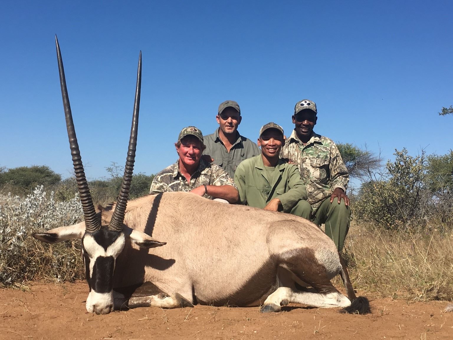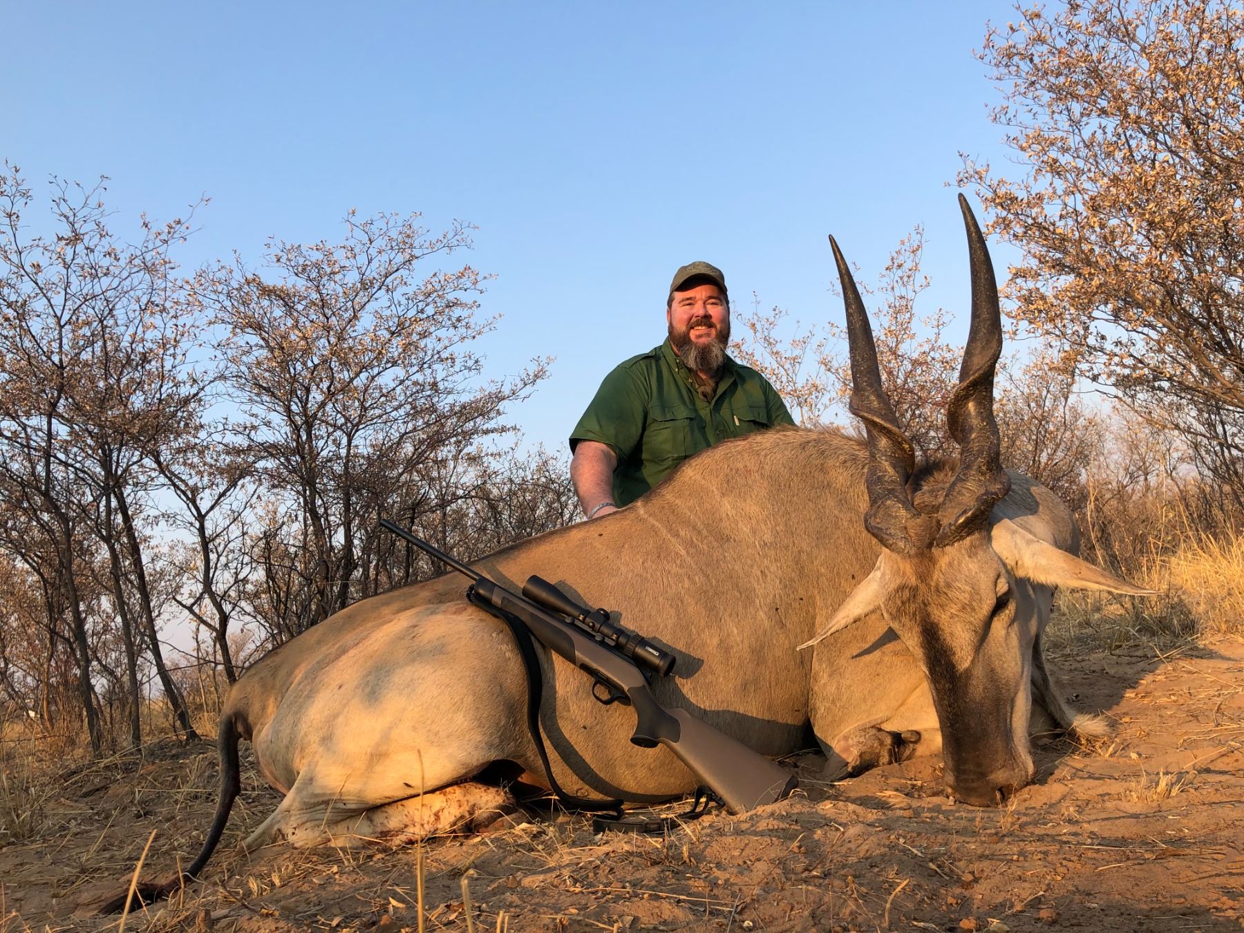 This is a 7-day 1x1 hunt for one hunter and one non-hunter with Kim and Clive Eaton of Tholo Safaris in the breathtaking Kalahari of Botswana. The hunt will take place on Tholo’s vast (120,000 hectare) private conservancy and includes trophy fees for 1x Eland, 2x Blue Wildebeest and Gemsbok. Method of take is the hunter’s choice – buyer should contact outfitter to discuss weapons and permits. This hunt is available March-September 2024 and may be upgraded to include additional species (and additional hunters/non-hunters) at current price list. This package includes field prep, transportation to local shipper, RT transfers from Maun Airport, tented/chalet accommodations and meals. Not included are dip & pack service, firearm import permit and gratuities.