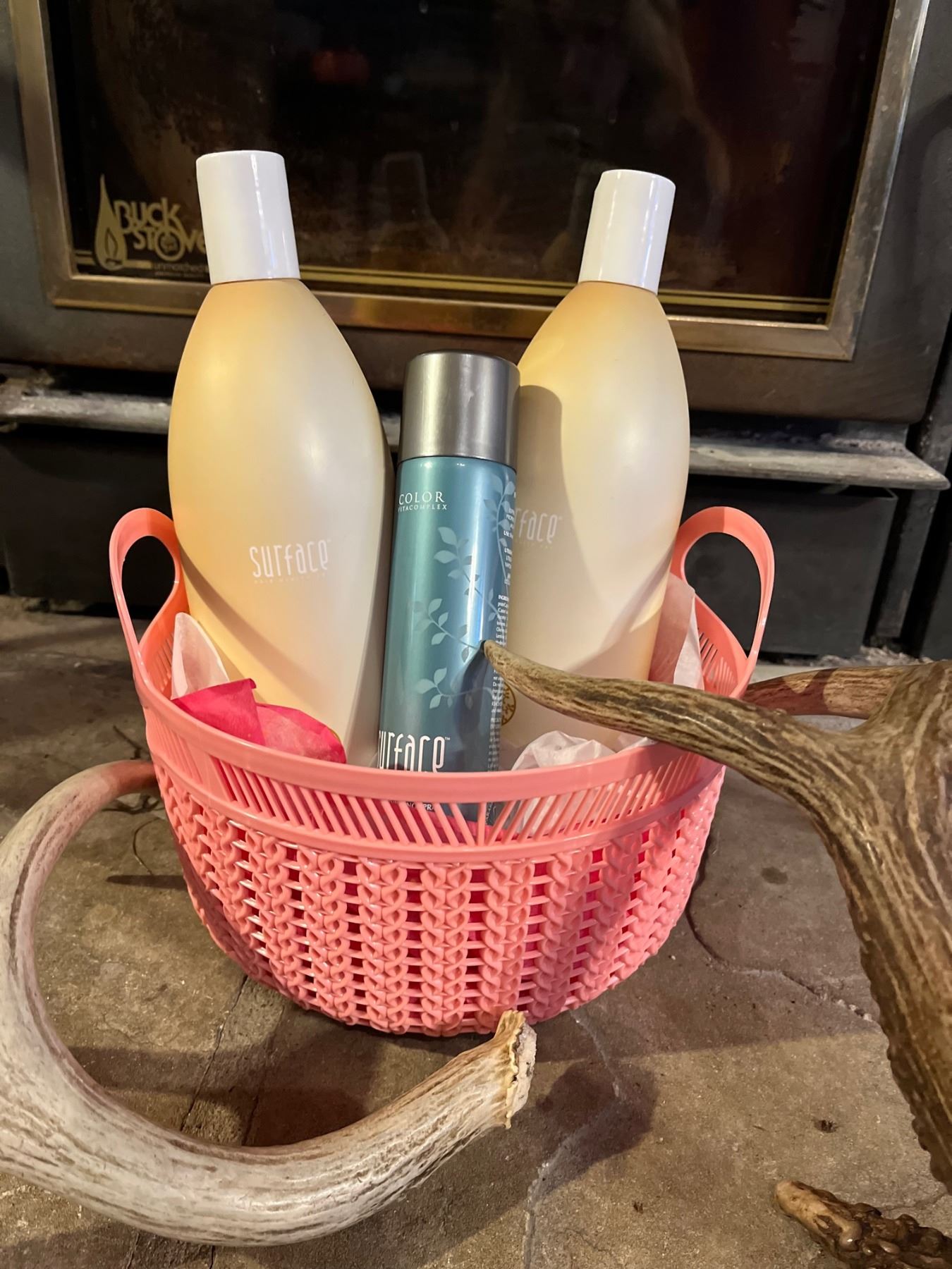 Surface Hair Product Basket (Bassu Moisture Shampoo, Conditioner, & Taffy Wax Finishing Spray)
