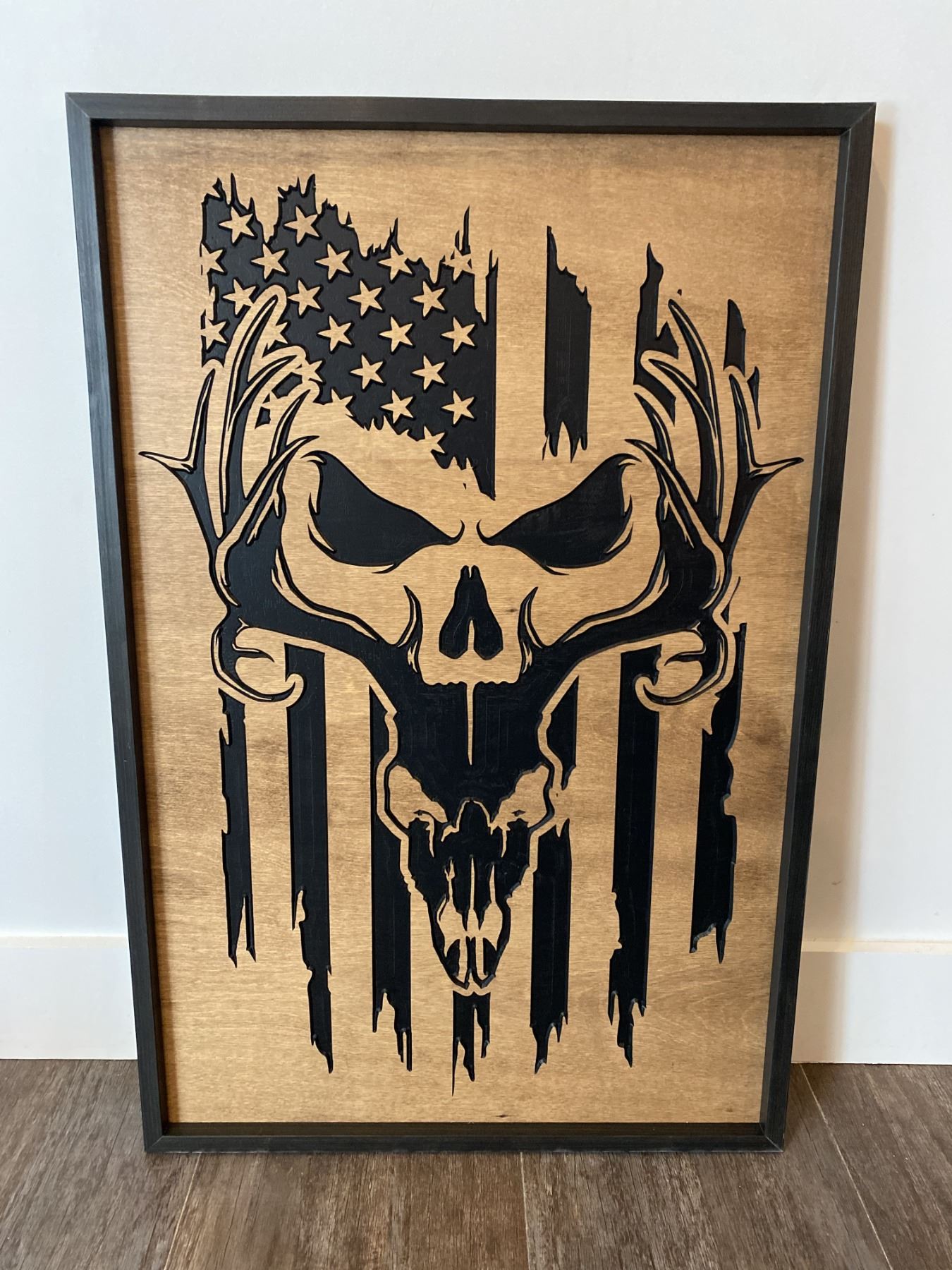 Lot 14 Woodline Designs American Flag / Deer Skull Wood Wall Art, 24" x 36"