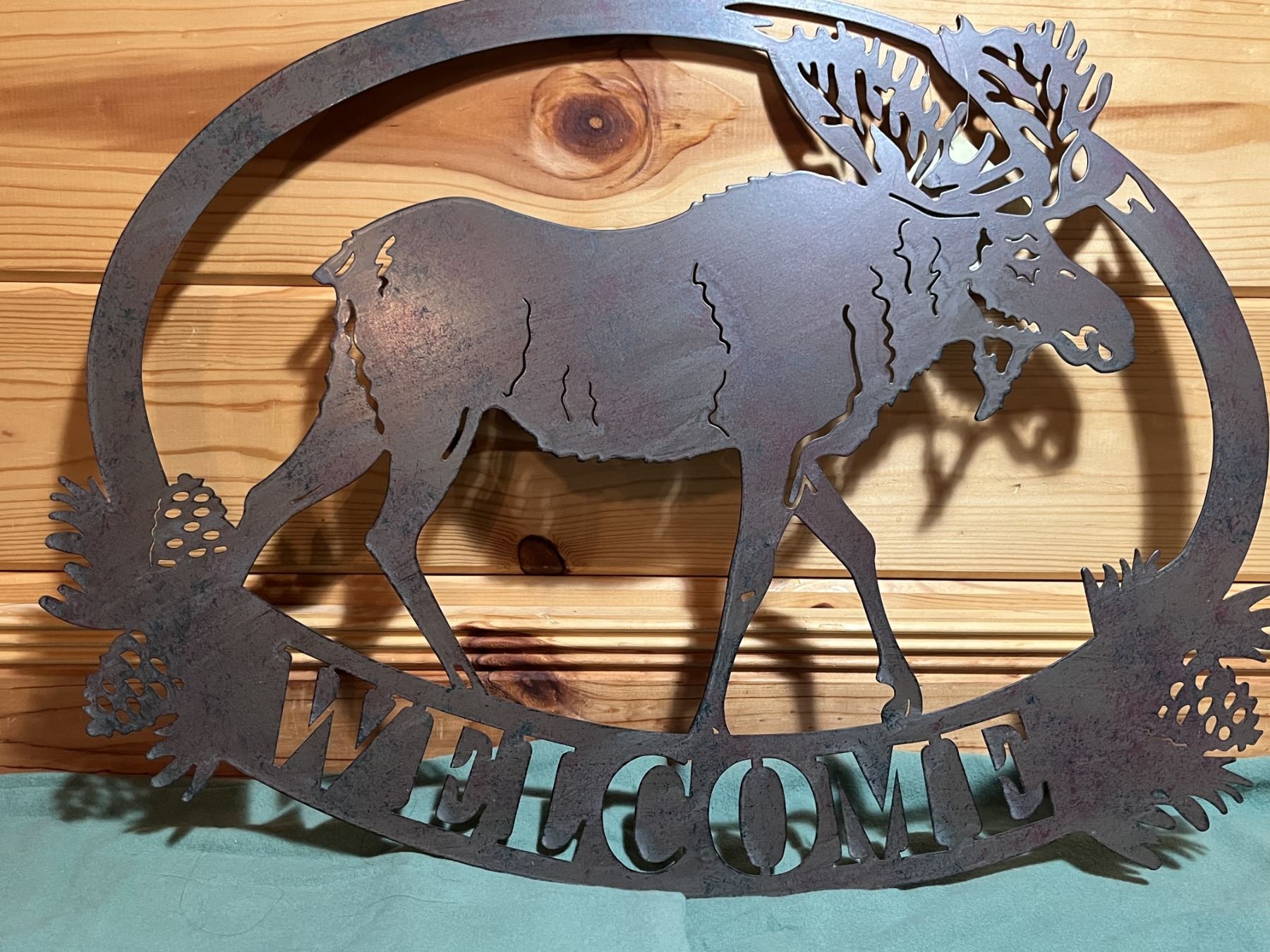 Lot 21 May Rich Metal "Moose Welcome" Sign / Wall Art