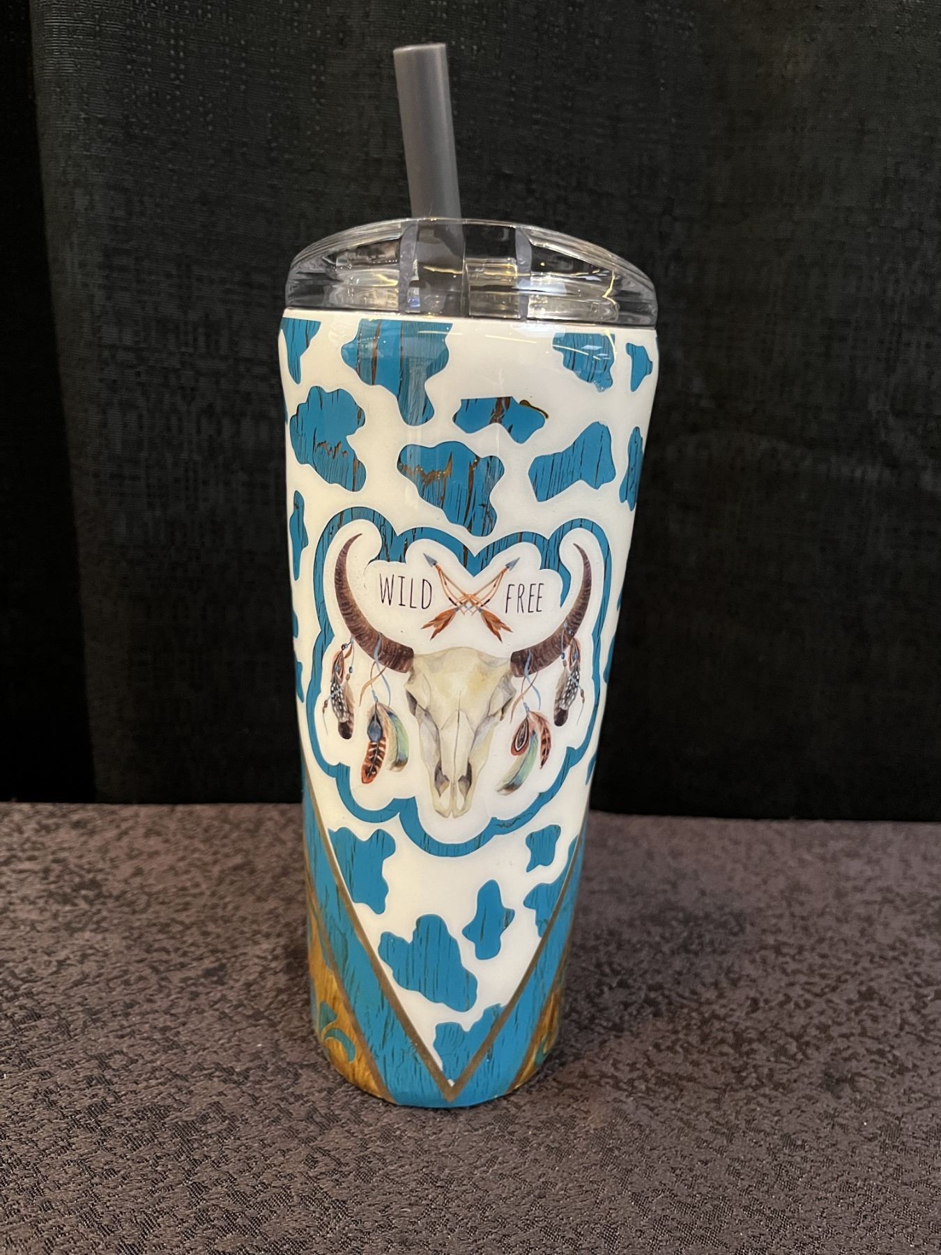 Custom 24 oz "Wild Free" Tumbler with Lid & Drinking Straw