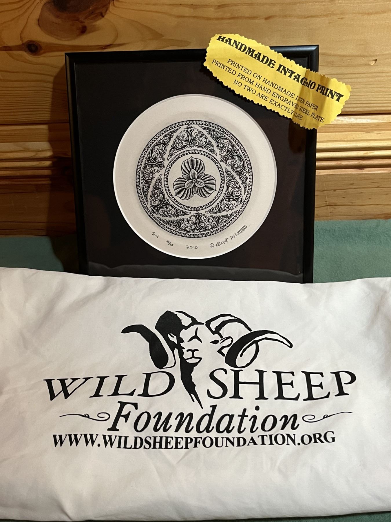 Lot 53 Framed Handmade Intaglio Print on Linen Paper w/ Wild Sheep Cloth Bag