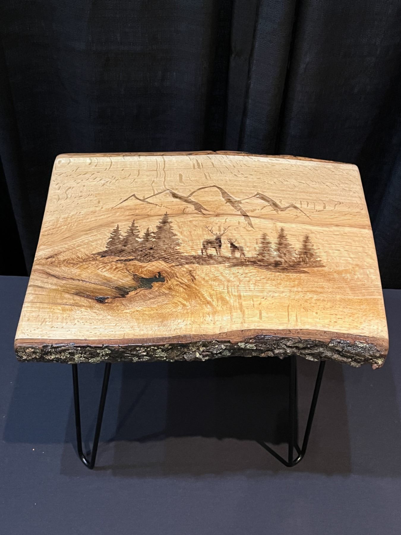 Handmade Red Oak Live Edge Side Table with "Wildlife Scene"