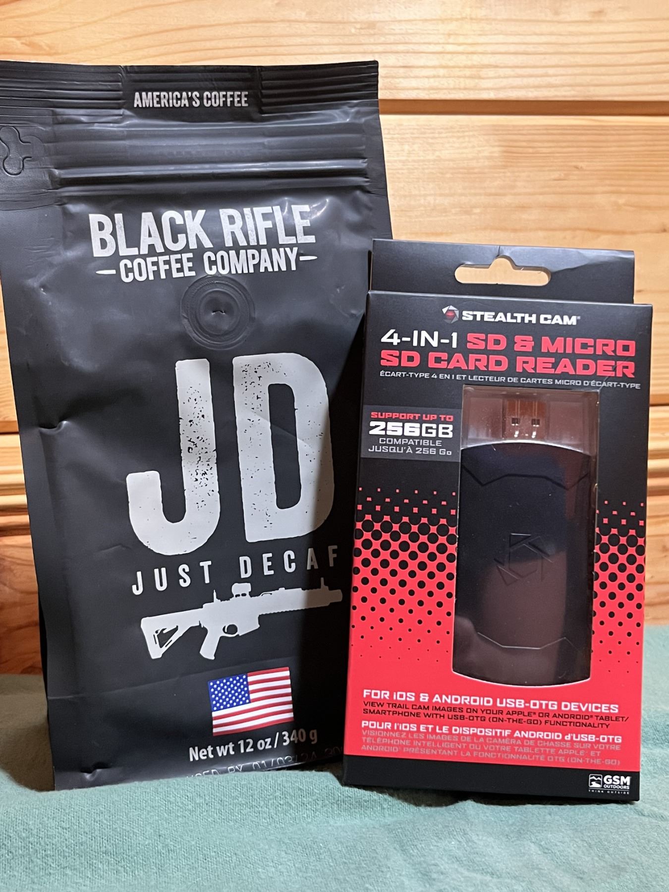 Lot 70 Stealth Cam 4:1 SD & Micro SD Card Reader and 1-Bag of Black Rifle "JUST DECAF" Coffee